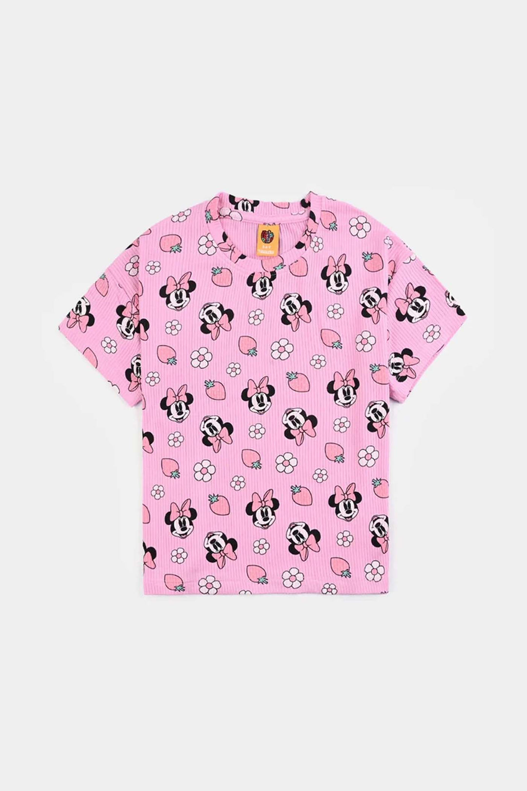 Girls 2x1 Rib T-Shirt F/S MULTI FLOWER - Pink