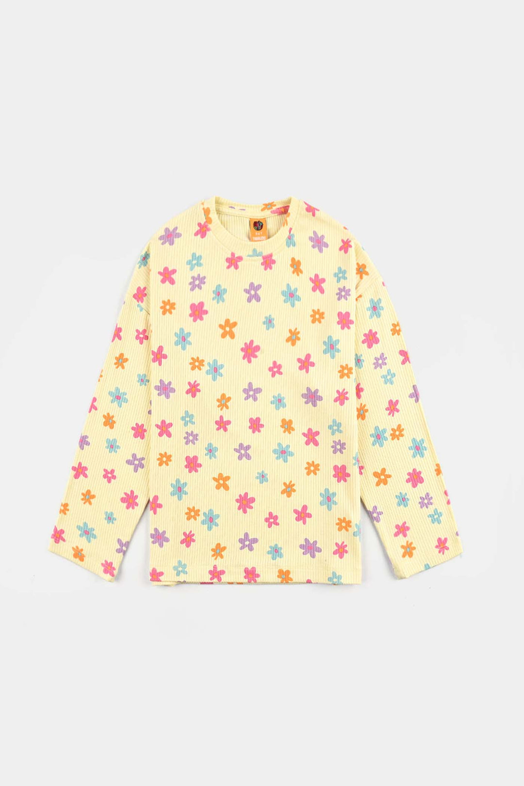 Girls 2x1 Rib T-Shirt H/S MULTI FLOWER - Yellow