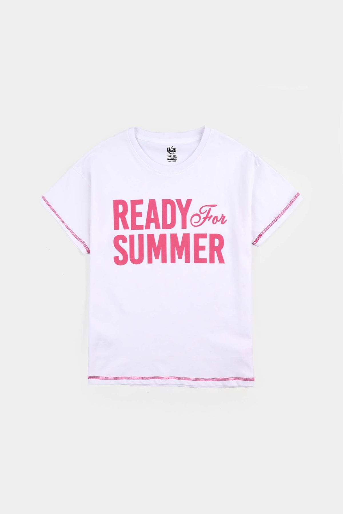 Girls Jersey/Terry T-Shirt (Ready For Summer) - White