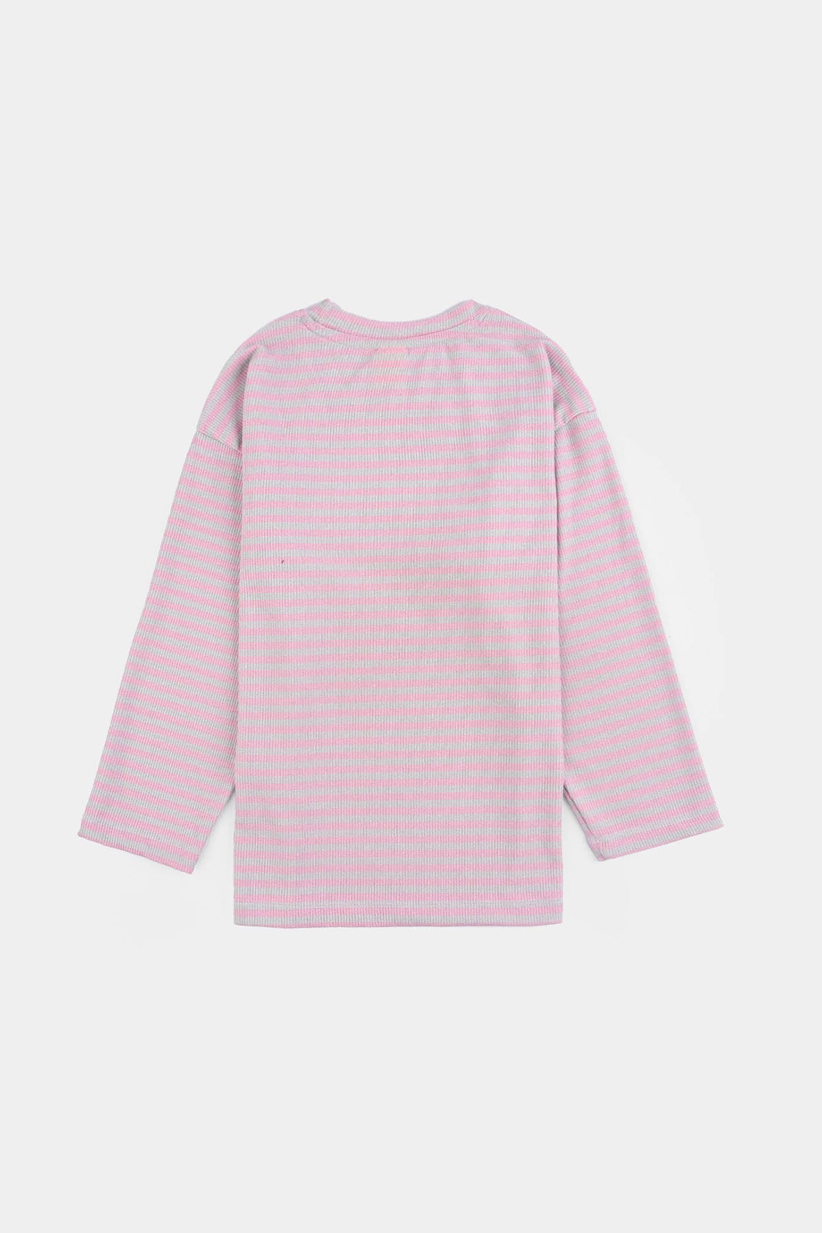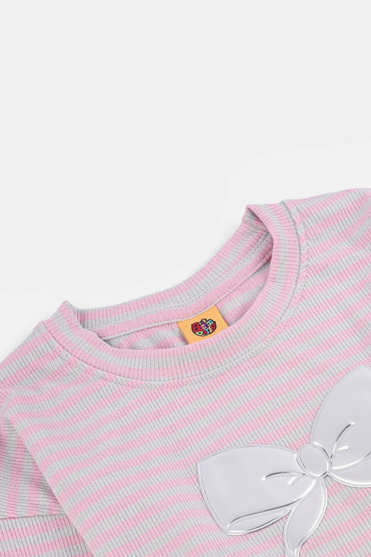 Girls Rib T-Shirt F/S SILVER BOW-Pink/Grey