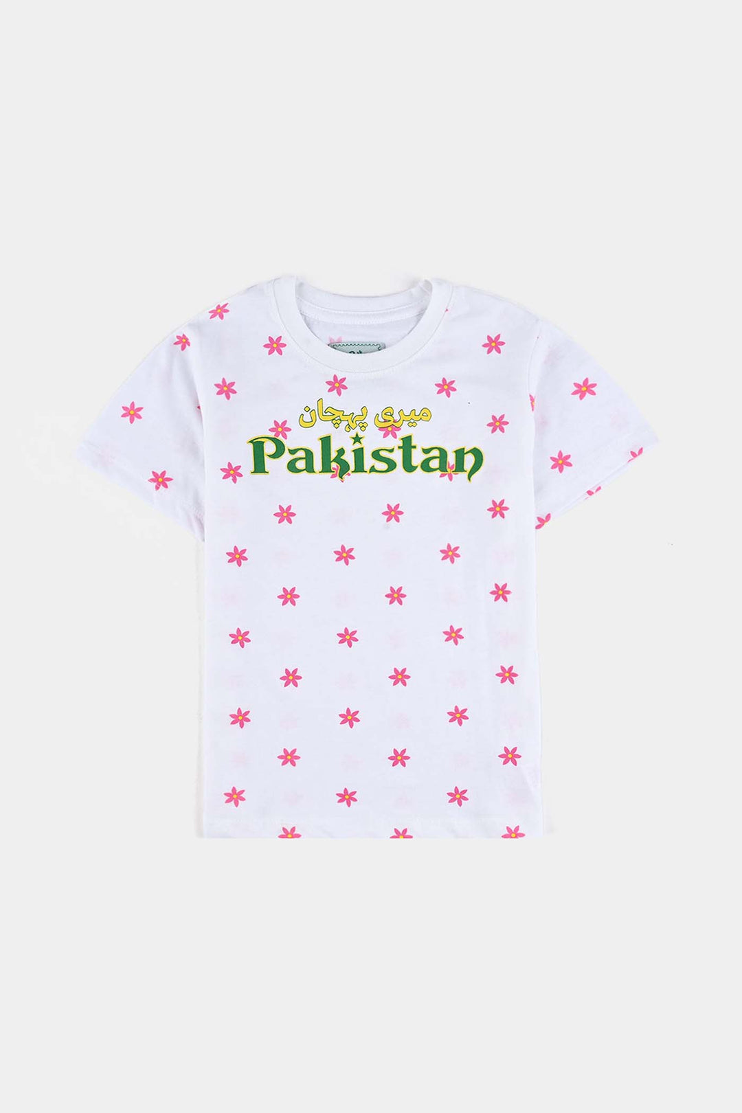 Girls Poly Cotton Jersey T-Shirt H/S GUL-E-AZADI-Snow White