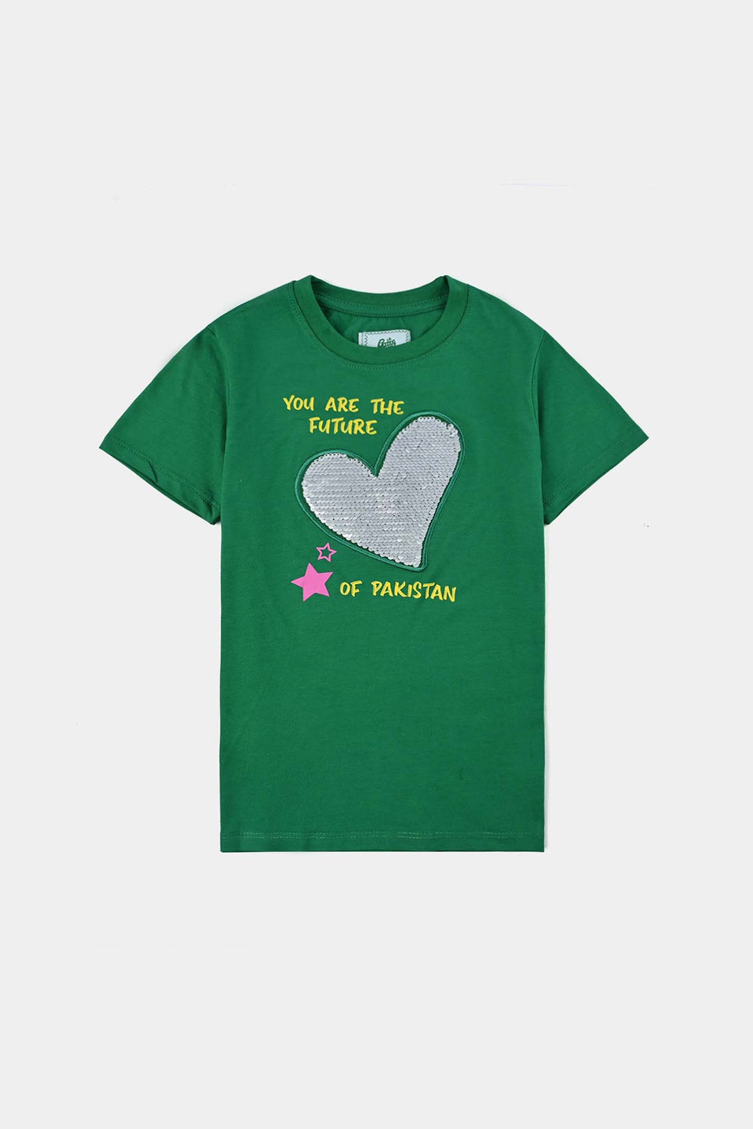 Girls Poly Cotton Jersey T-Shirt H/S SHINING HEART-Joly Green
