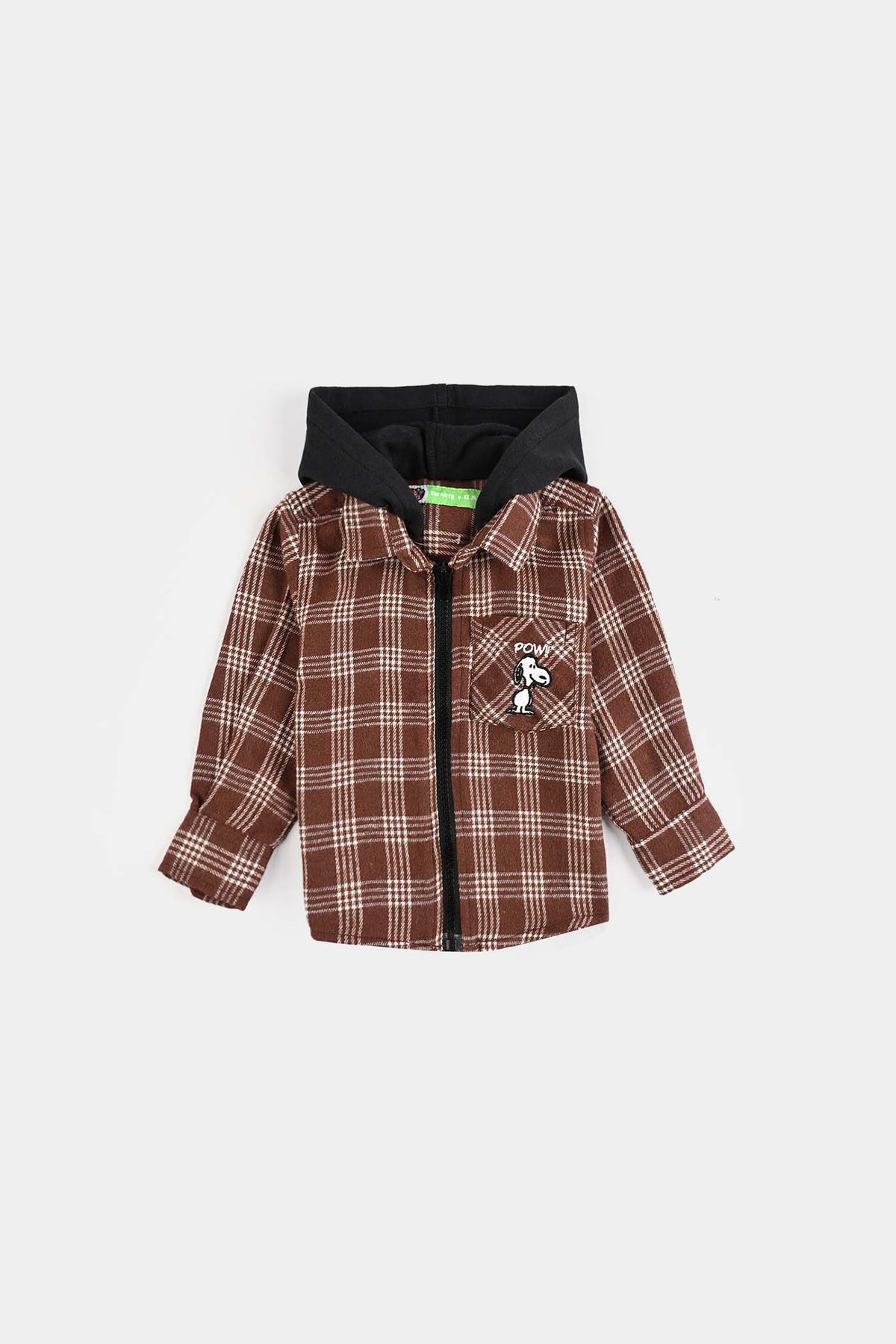 This brown check flannel shirt features a hood and zippered front, giving your little one a snug yet stylish layer for everyday adventures.