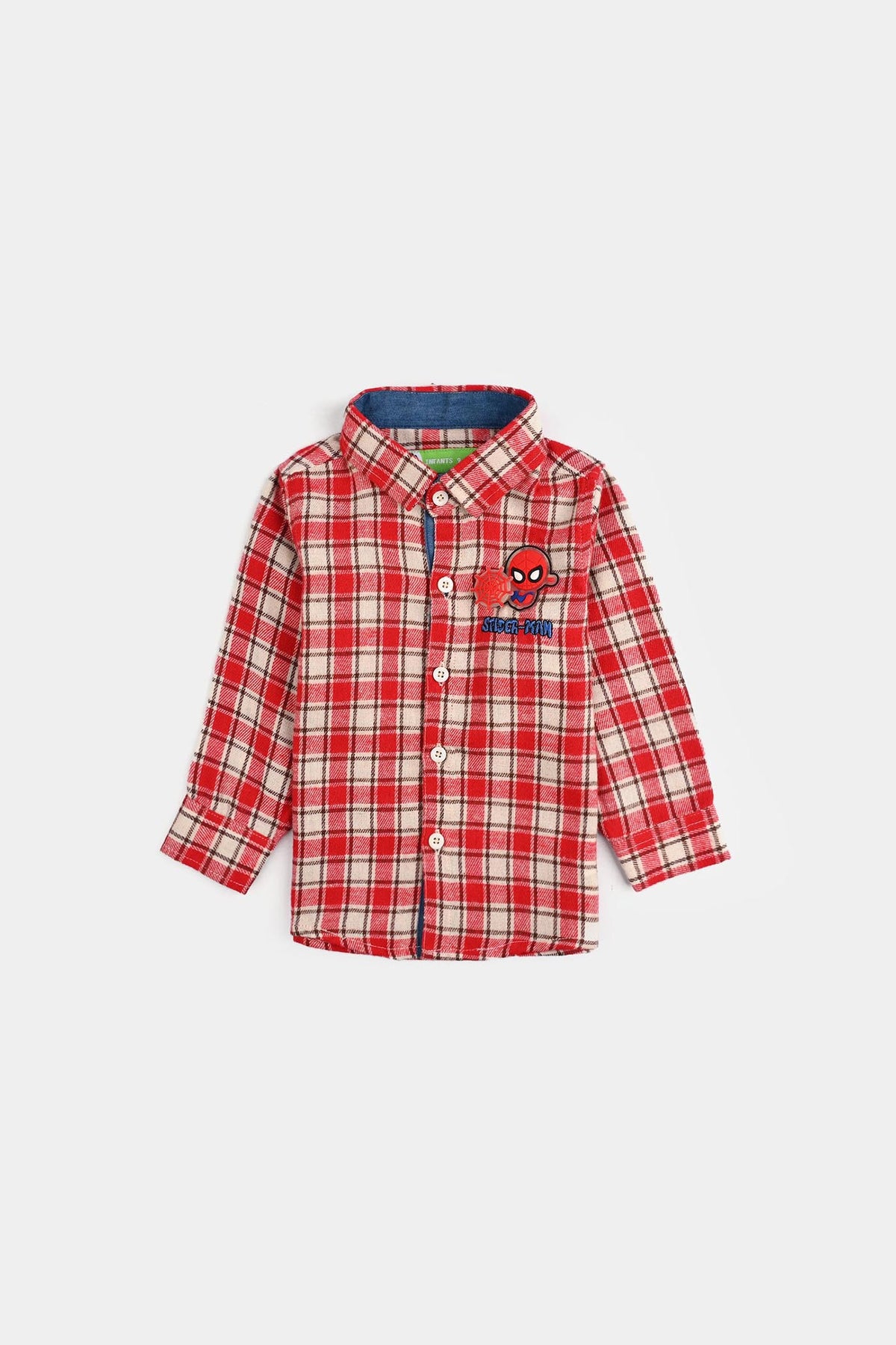 This Infant Boys Flannel Shirt in red check features a subtle Spider-Man embroidery, making it an ideal choice for young fans. Crafted from soft, breathable flannel, it ensures comfort and warmth for your baby. Its classic check pattern combines style with practical wearability, perfect for daily outings.