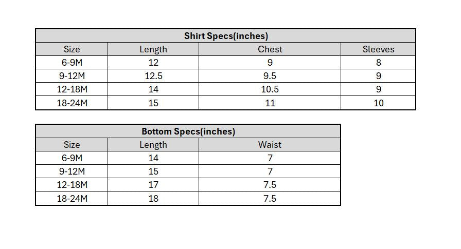 SIZE CHART NOTE: Please allow 0.5 inch +/- tolerance due to manual measurement