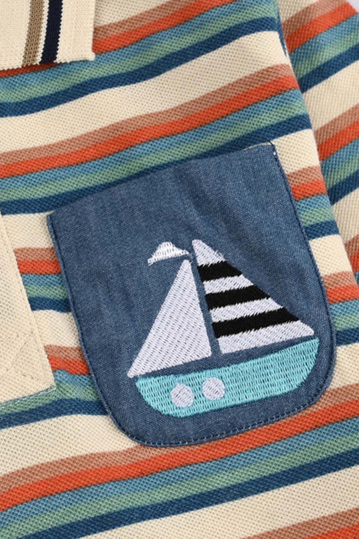 This boys jumbo pique multi-color polo shirt features full sleeves and a pocket with a ship embroidery. Easy to pair with any jeans or pants for a casual everyday look.