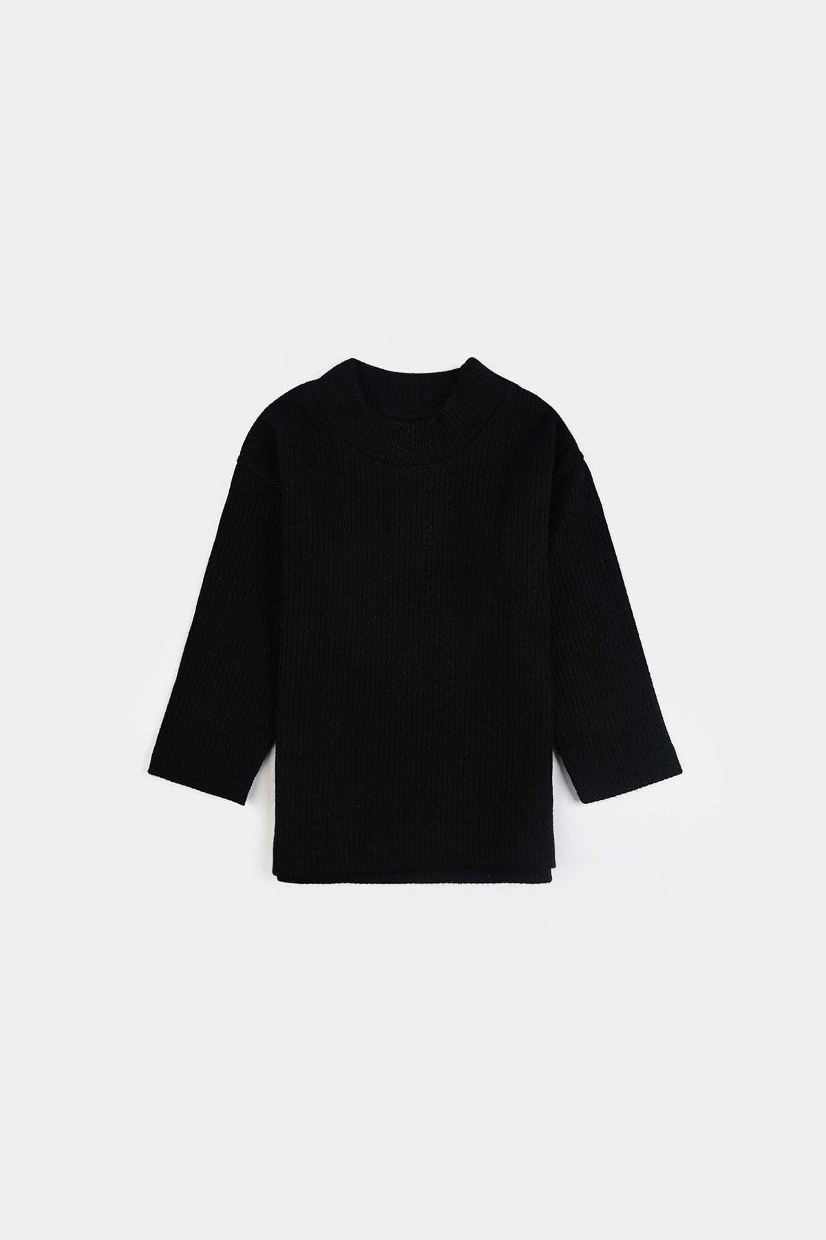 This ribbed black sweatshirt is a cozy classic, perfect for layering, keeping her snug and stylish through the season.