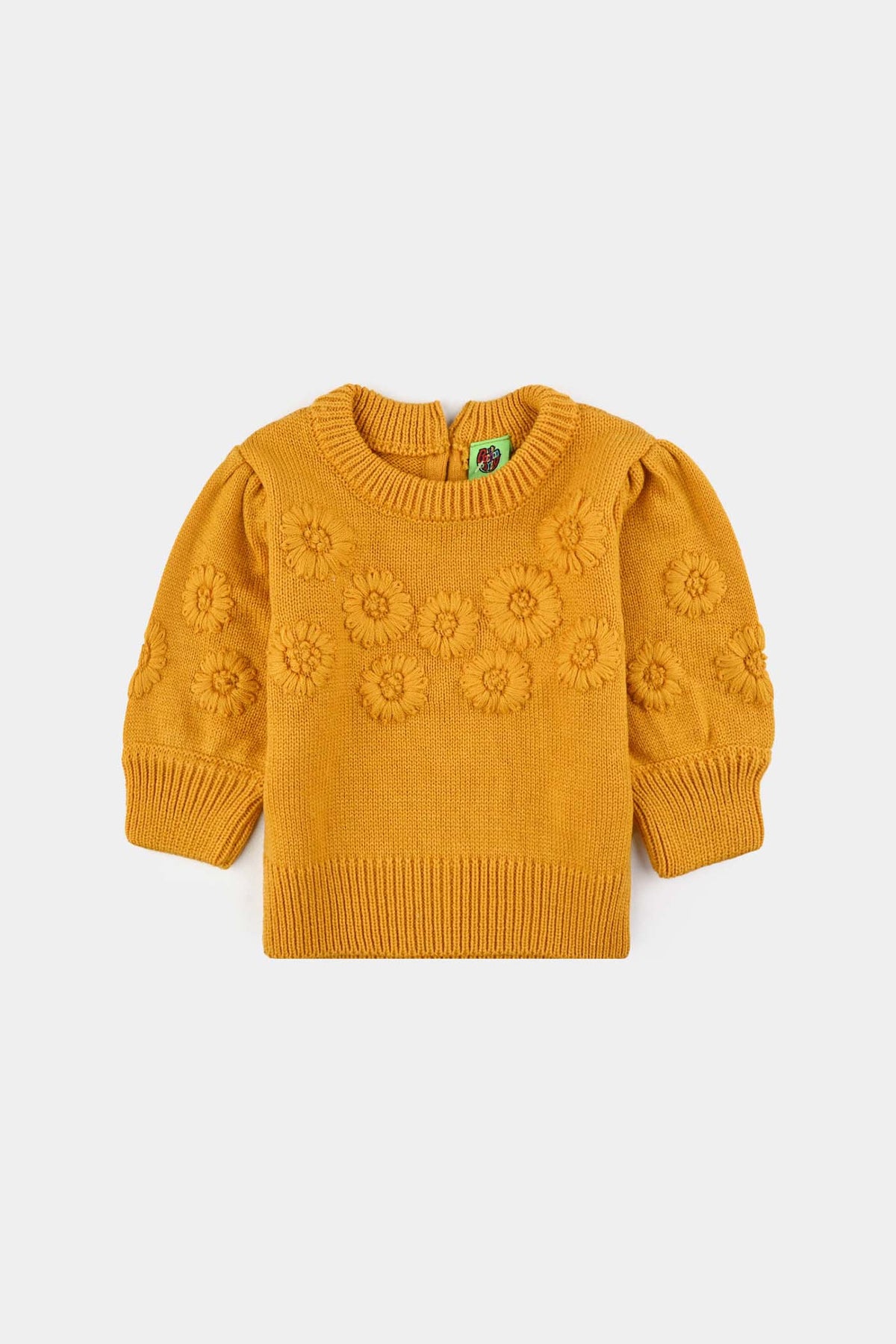 Blooming charm in every stitch. This snug-fit sweater is adorned with sweet flower bunch embroidery, keeping her cozy while adding a cheerful touch.