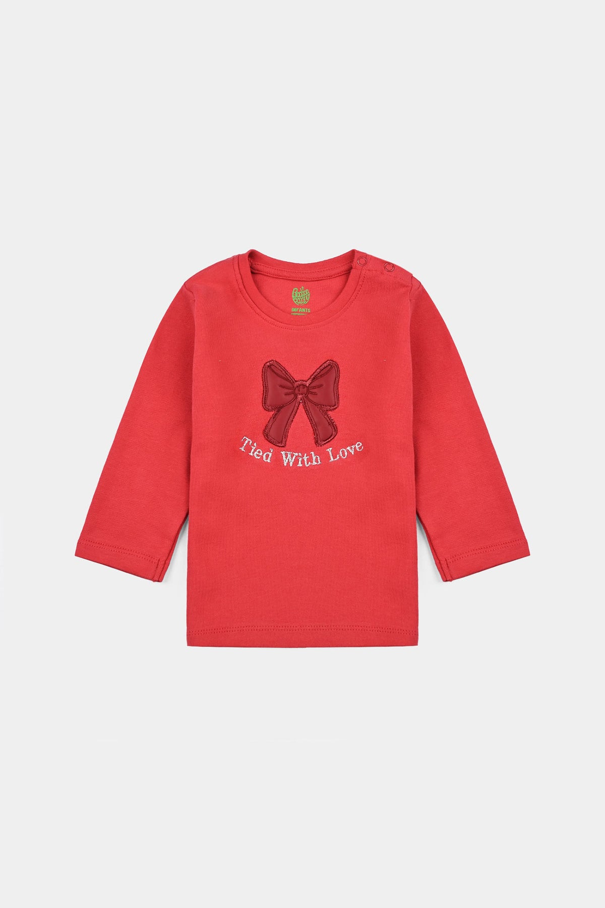 Bright and fun, this two-piece suit includes a soft T-shirt and drawstring pajamas in bold tango red. Designed for comfort and play, with a cute bow detailing.