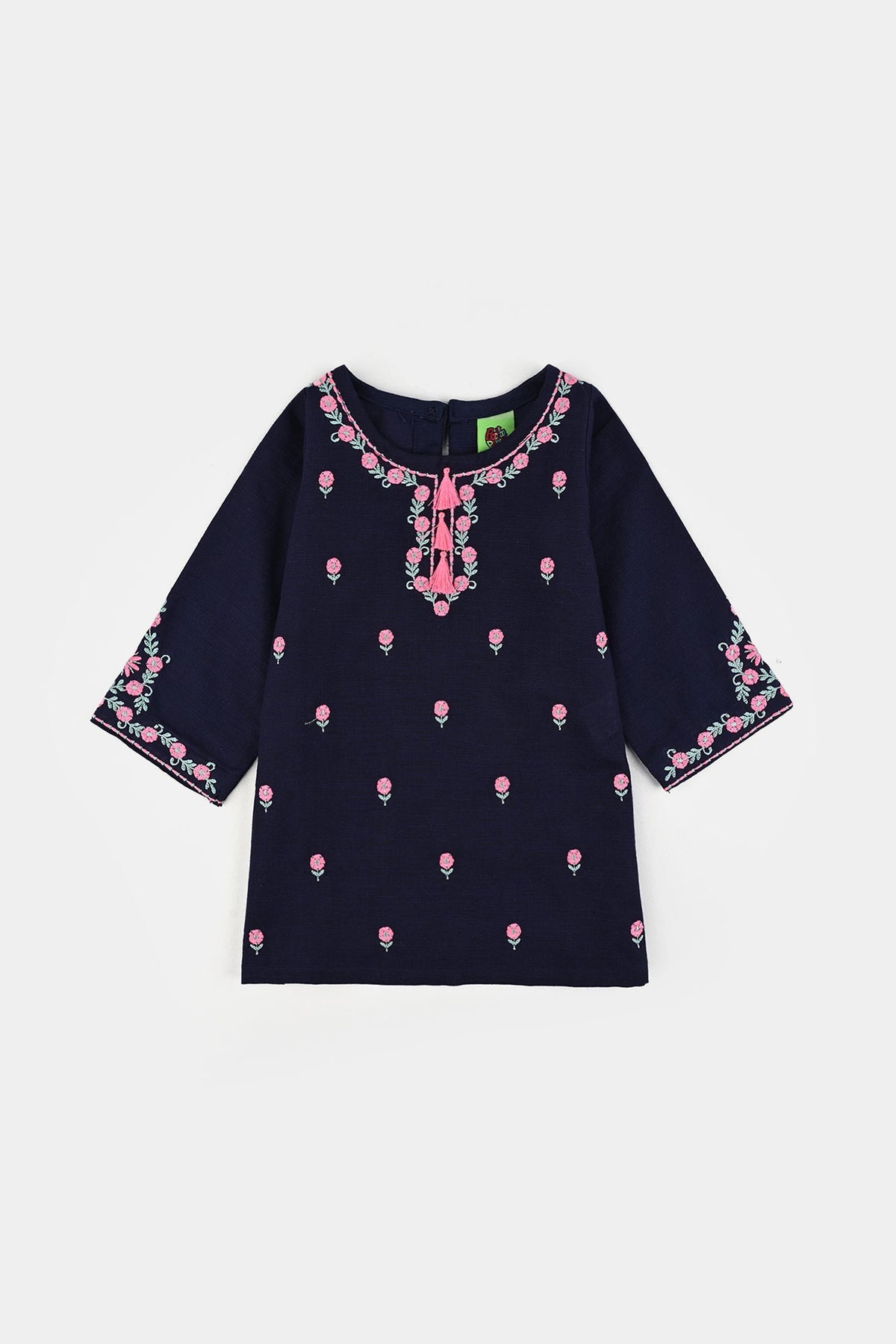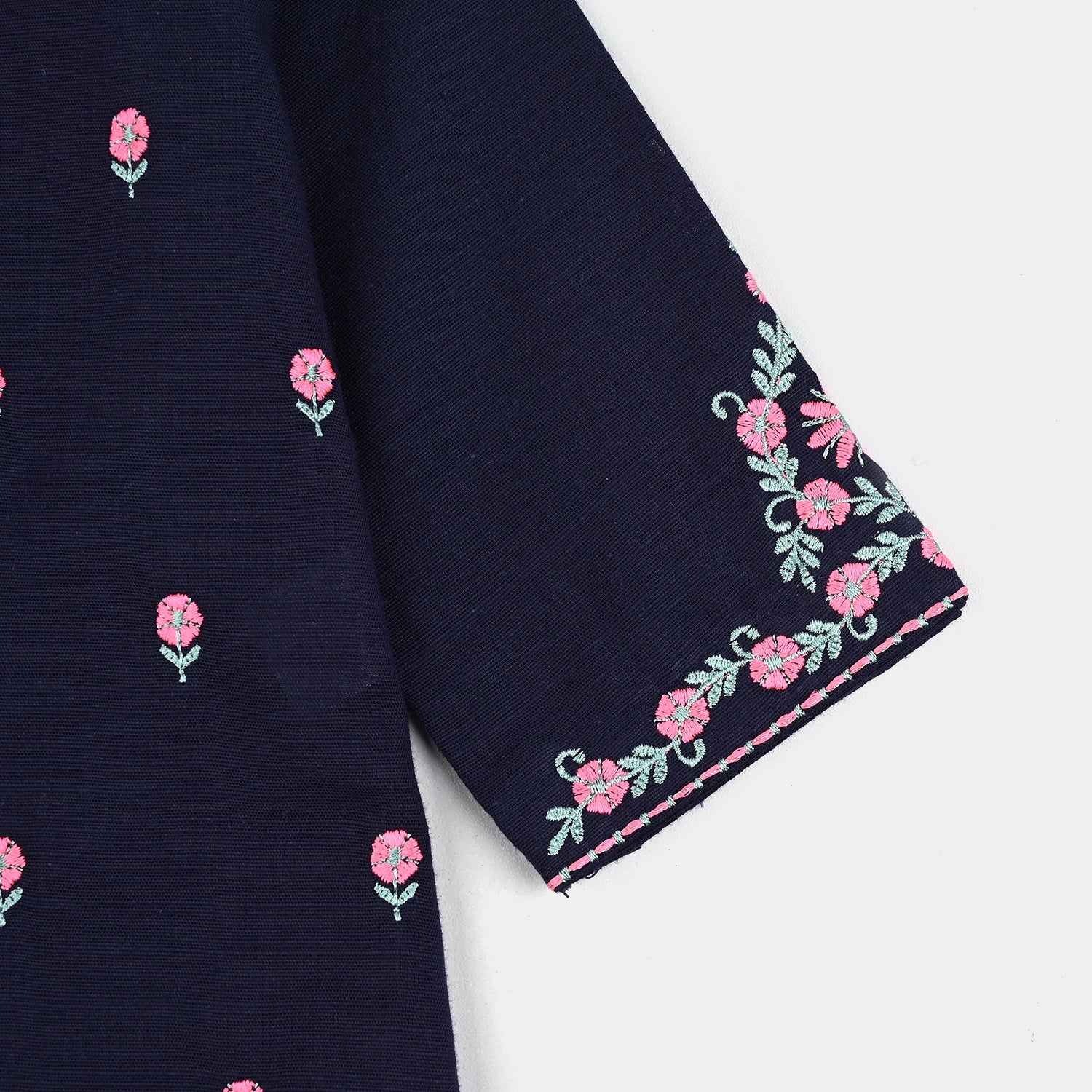 Sweet, soft, and stylish. This 2-piece cotton slub set includes a round-neck top with beautifully embroidered full sleeves and matching pants. Perfect for everyday comfort or special moments, it keeps your little one cozy and charming all day long.