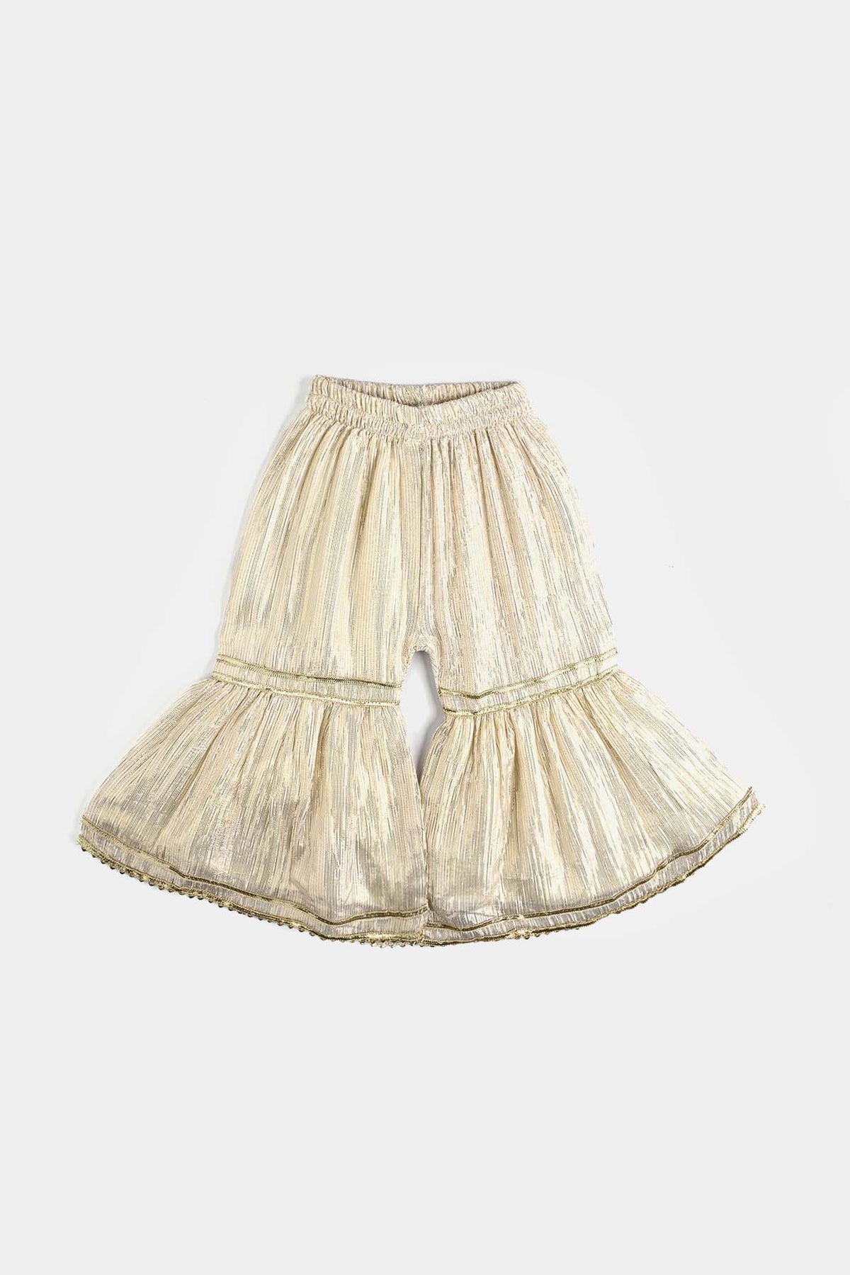 Make your little one shine on special occasions with this beautifully crafted Masori 3-piece set. The embroidered Masoori shirt features a round neckline and full sleeves for a graceful look, paired with a contrasting gharara and a matching dupatta that complete the outfit perfectly. A lovely blend of tradition, comfort, and timeless charm.