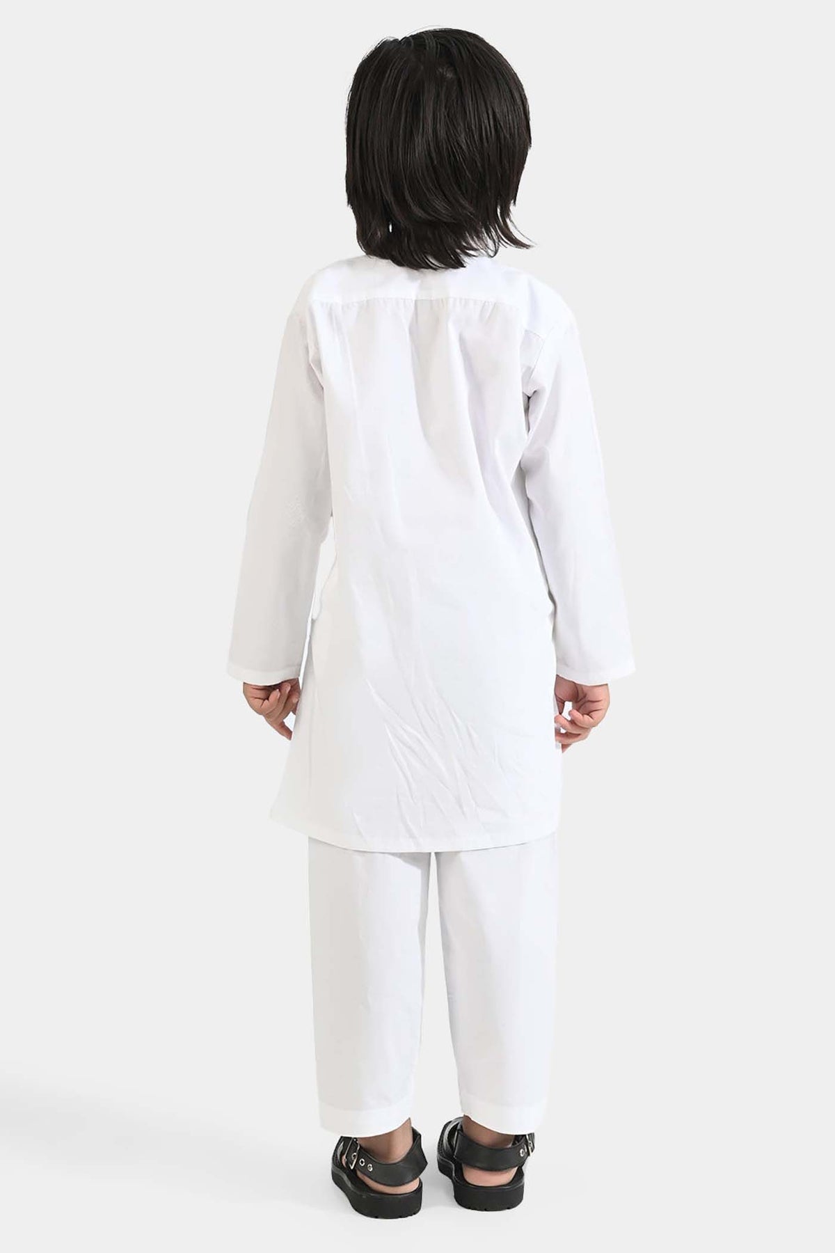 Boys Cotton Poplin Kurta Shalwar Suit-White