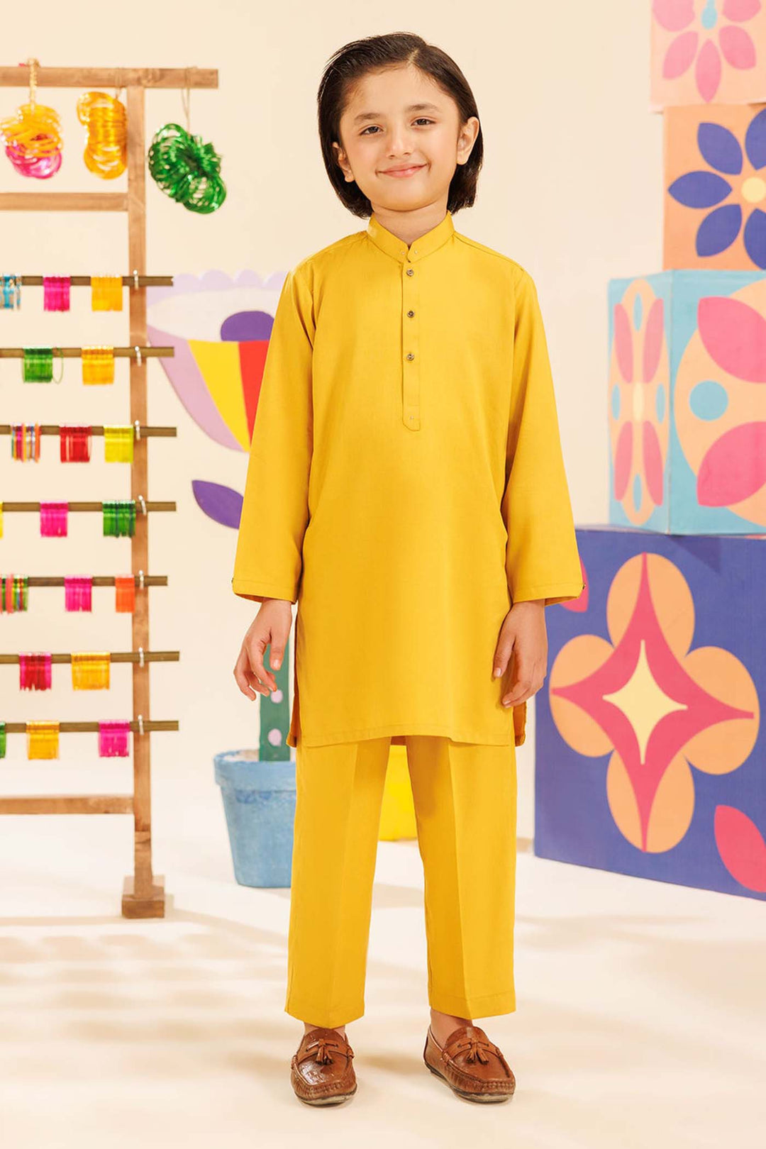 Boys Cotton Shalwar Suit (Dashed EMB)-Mustard