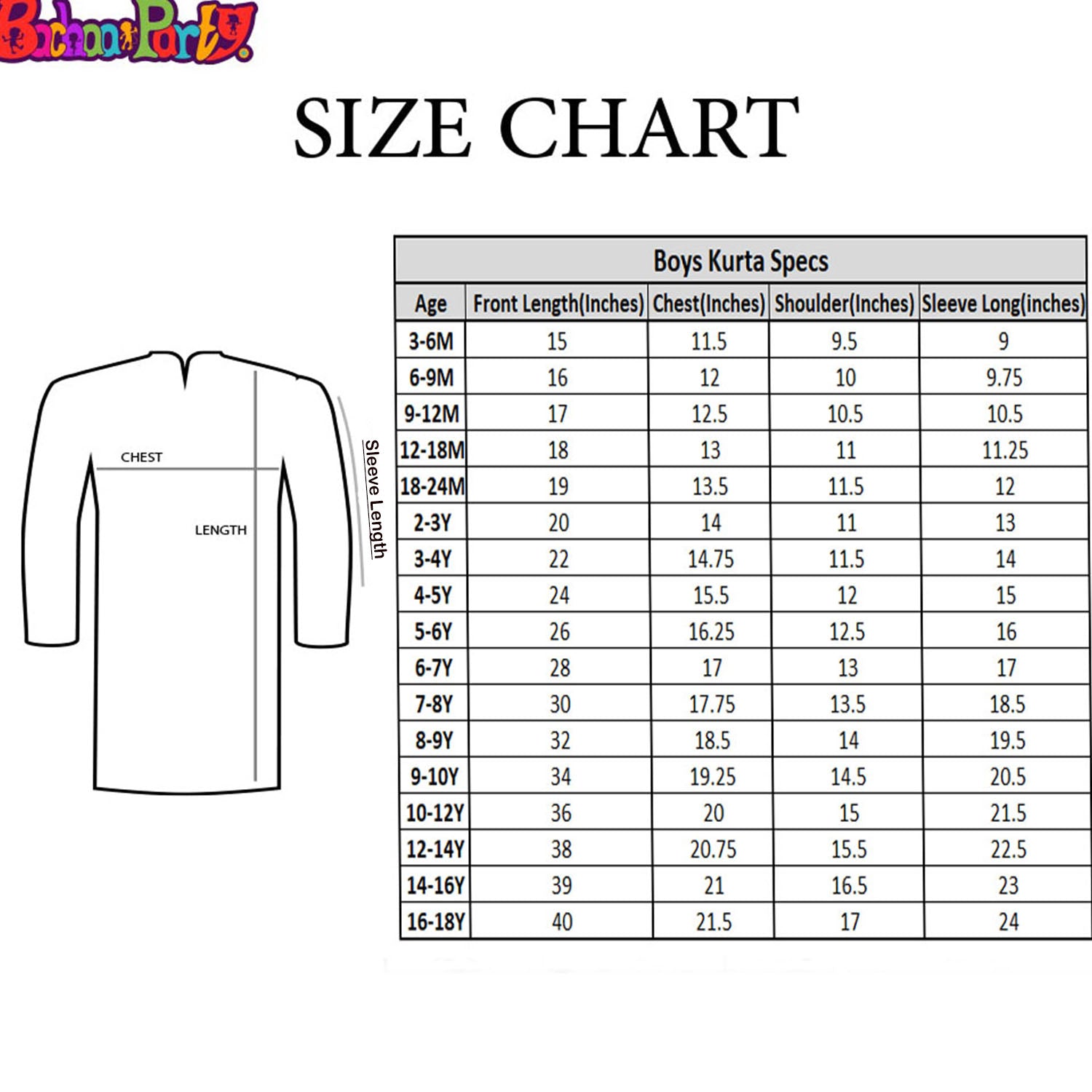 SIZE CHART NOTE: Please allow 0.5 inch +/- tolerance due to manual measurement