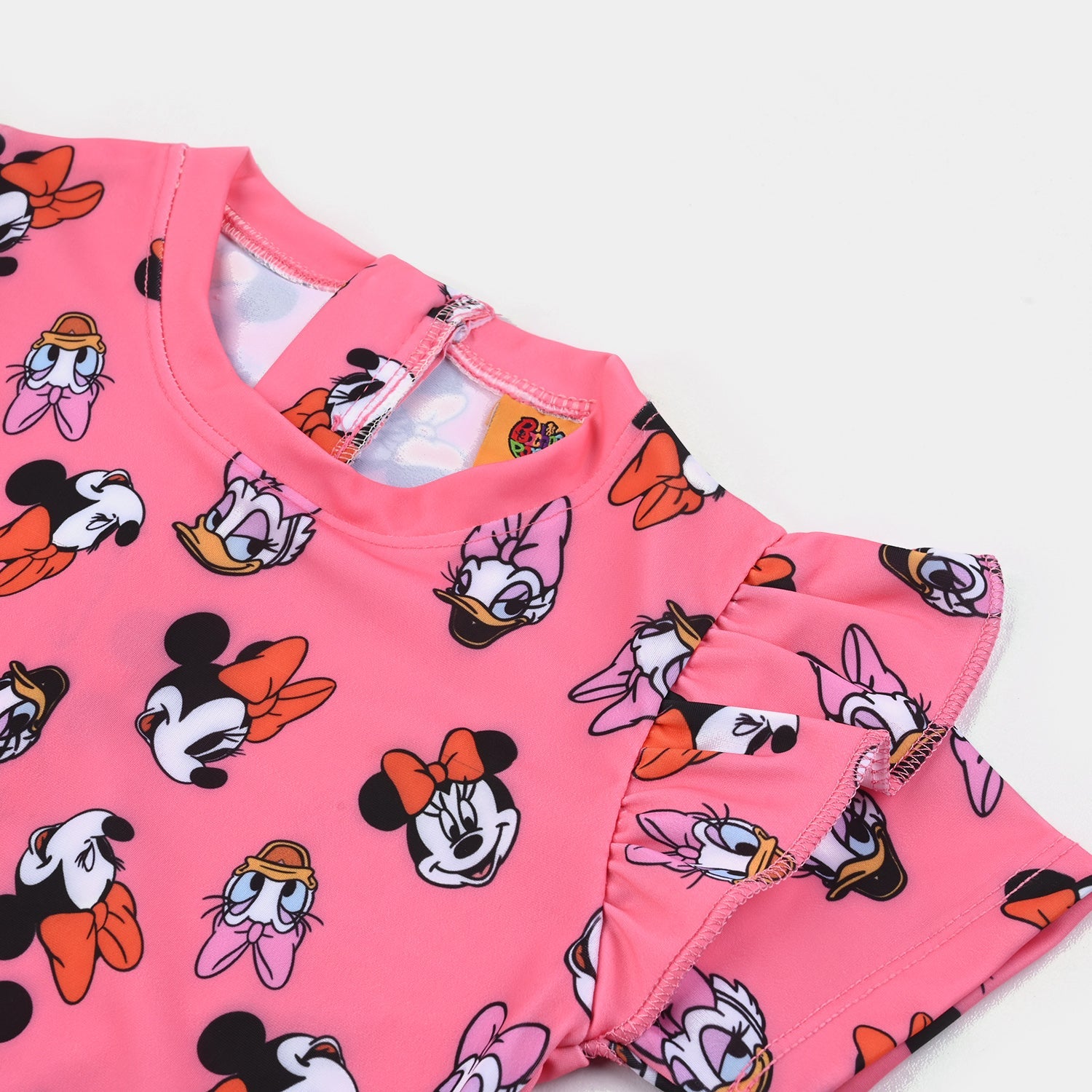 Summer never looked this cute. This romper adds a splash of color and fun style to the wardrobe. Features sweet ruffled sleeves and a playful print.