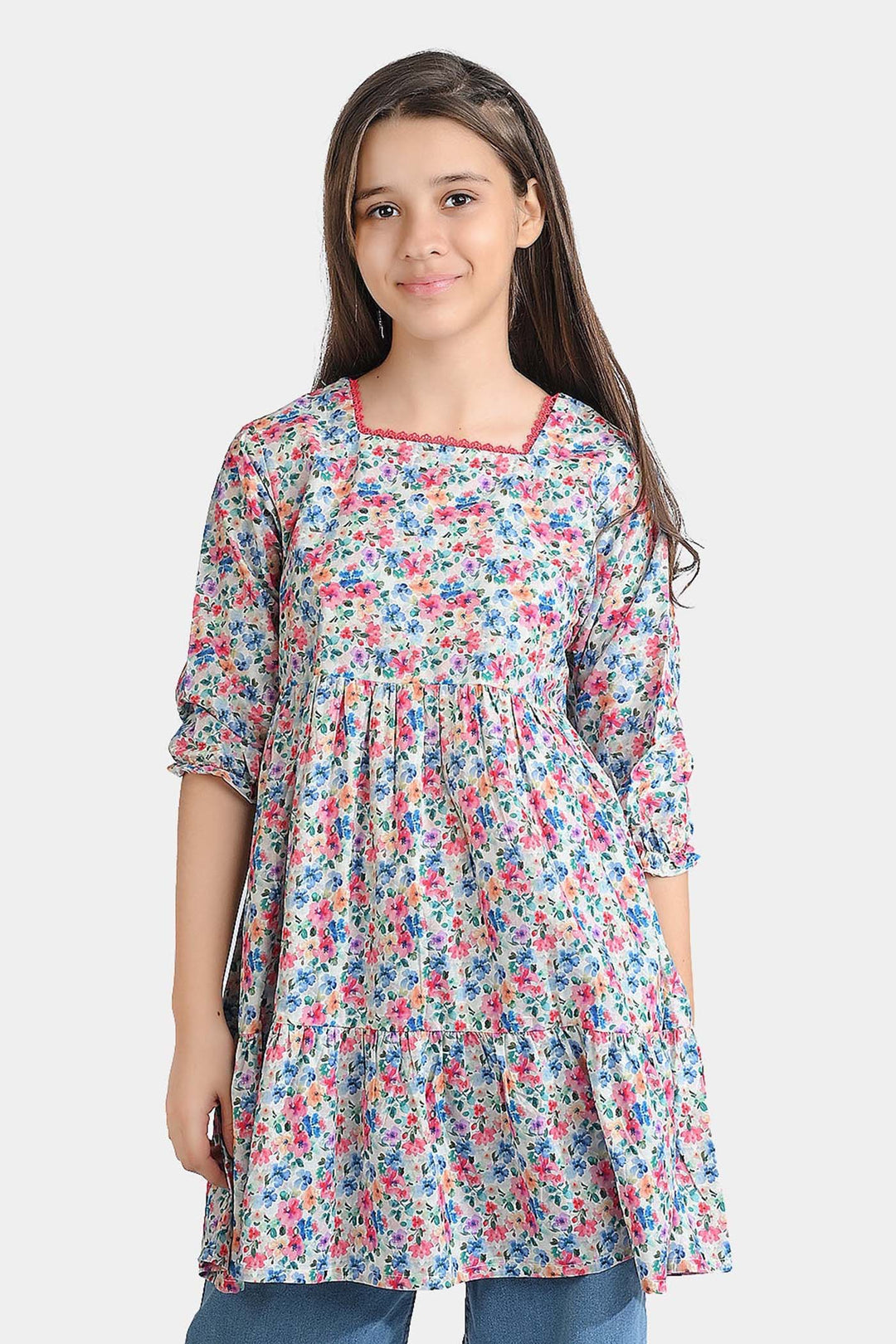 Girls Cotton Poplin Printed Kurti Floral-Multi