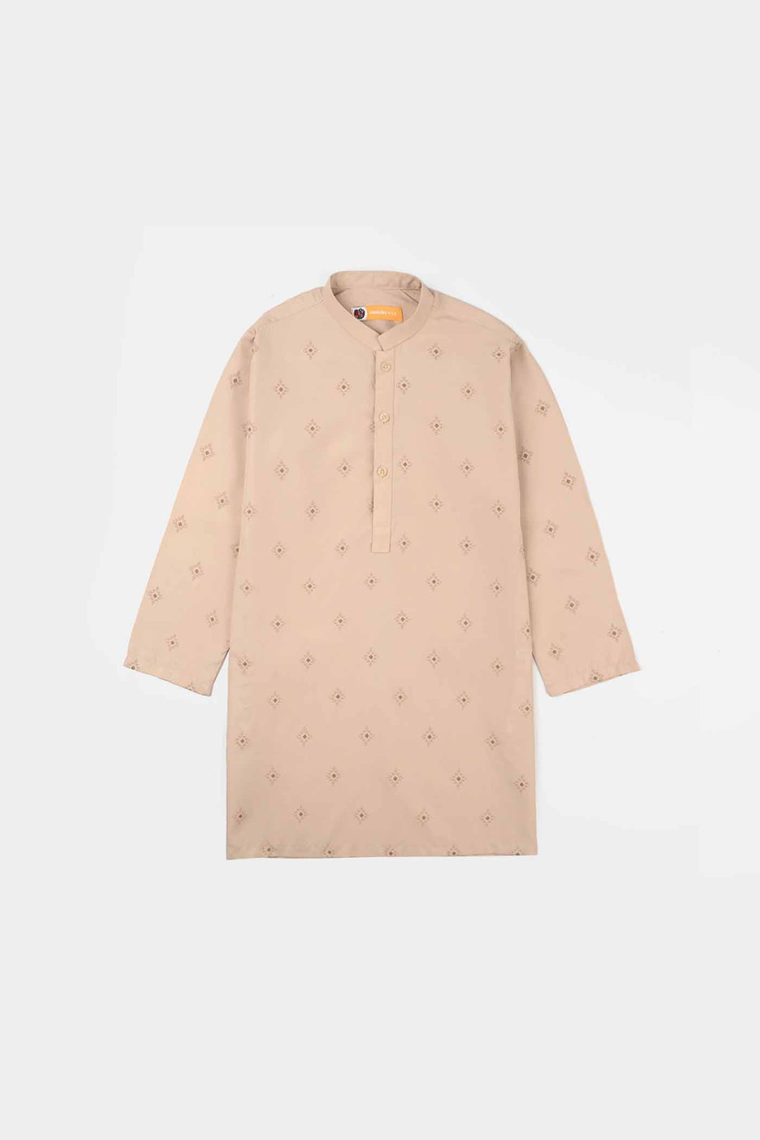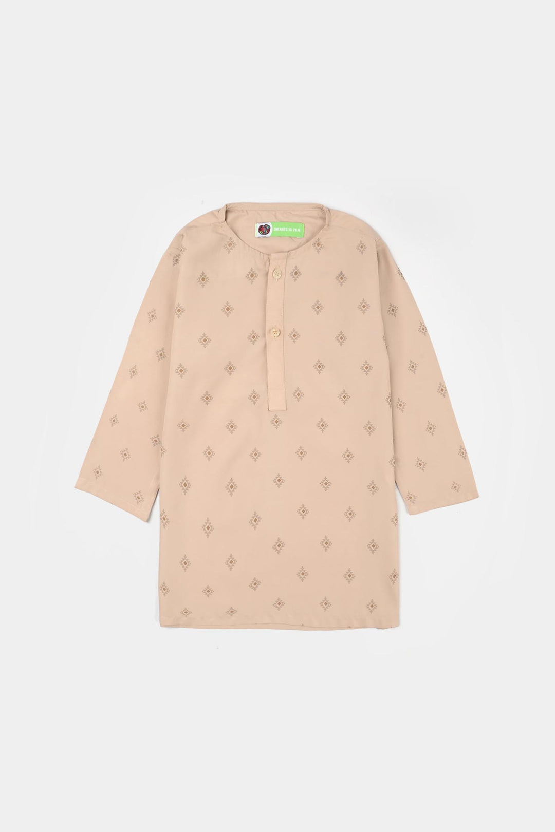 Infant Boys Poly Viscose Printed Kurta (Geometric)-BEIGE