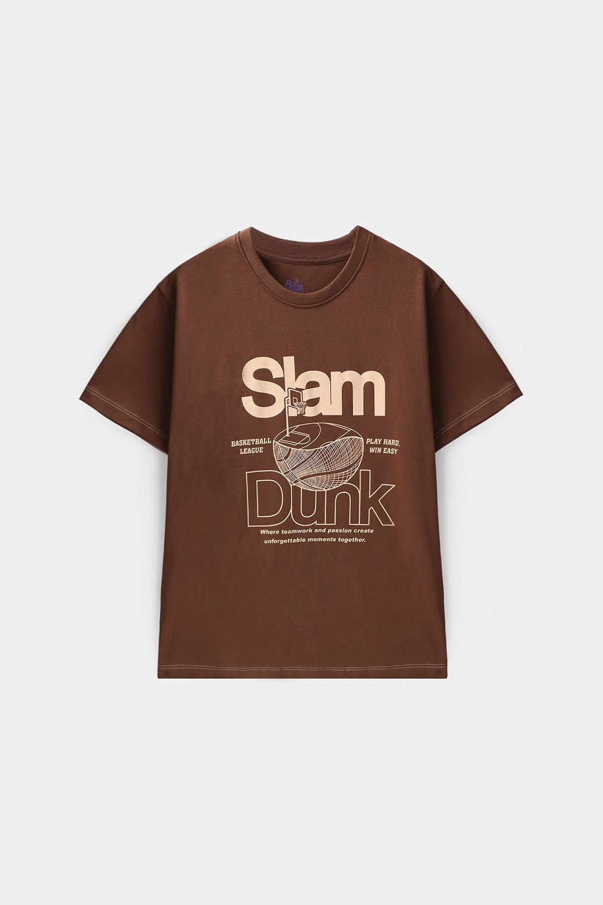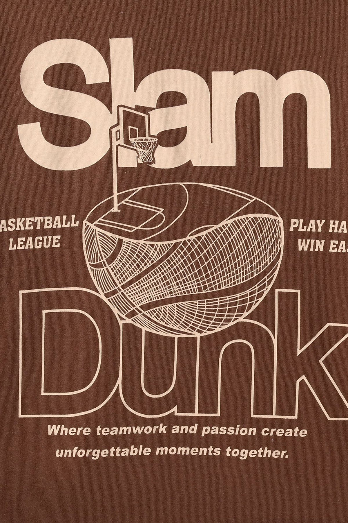 Boys' brown cotton jersey T-shirt featuring a round neck and half sleeves, perfect for casual and comfortable everyday wear.