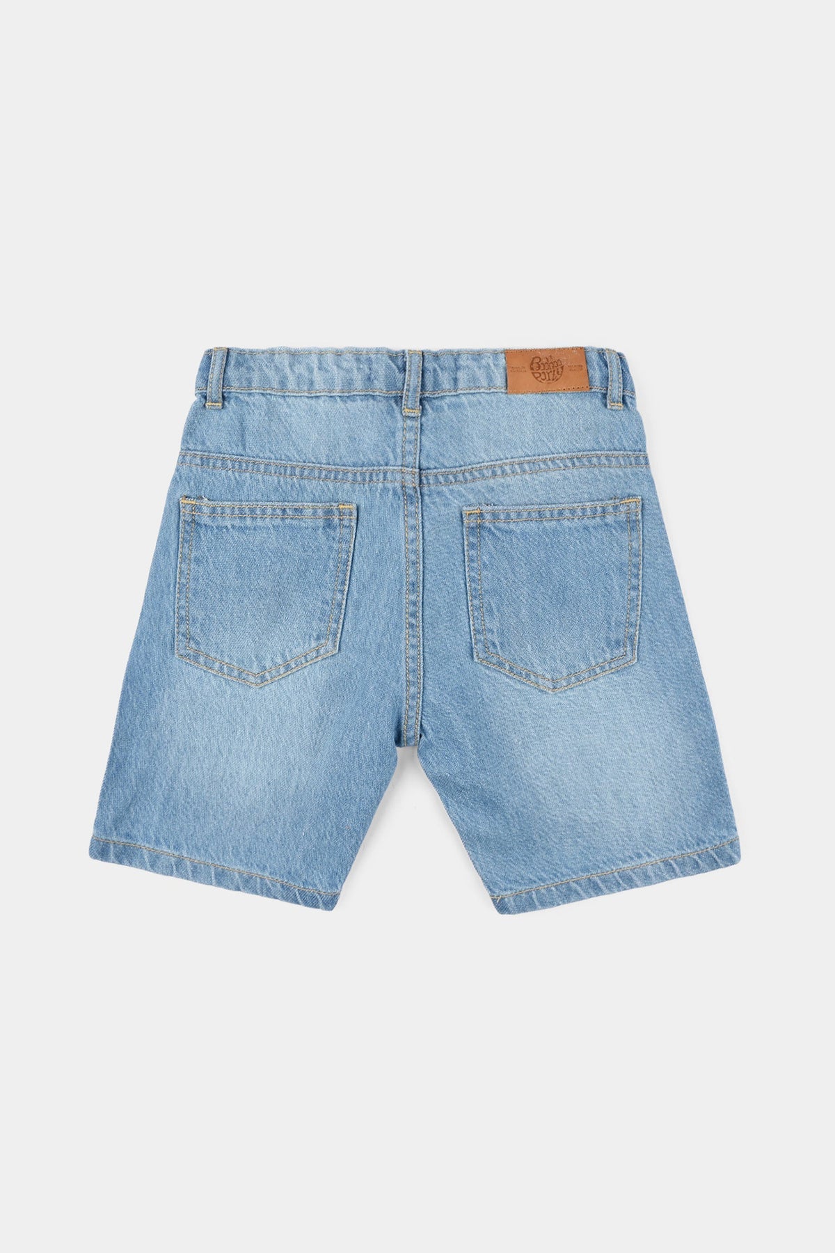 Boys’ light blue denim stretch shorts with pockets, perfect for everyday wear.