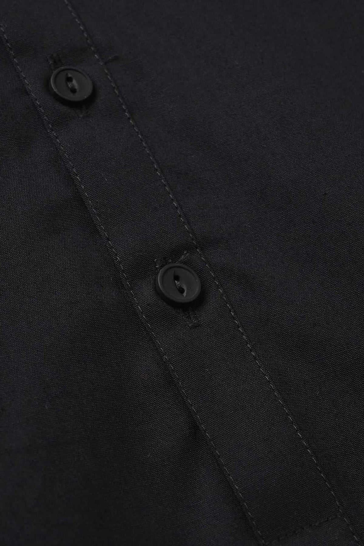 This boys black poplin kurta and pajama set features a sherwani collar and full sleeves, perfect for everyday wear.