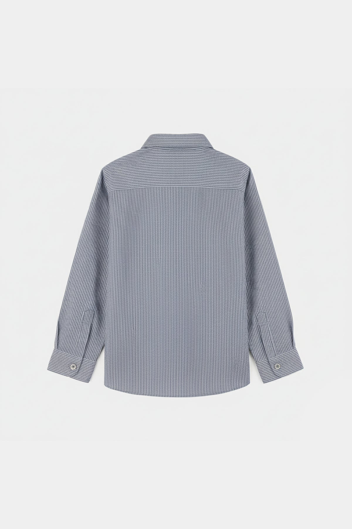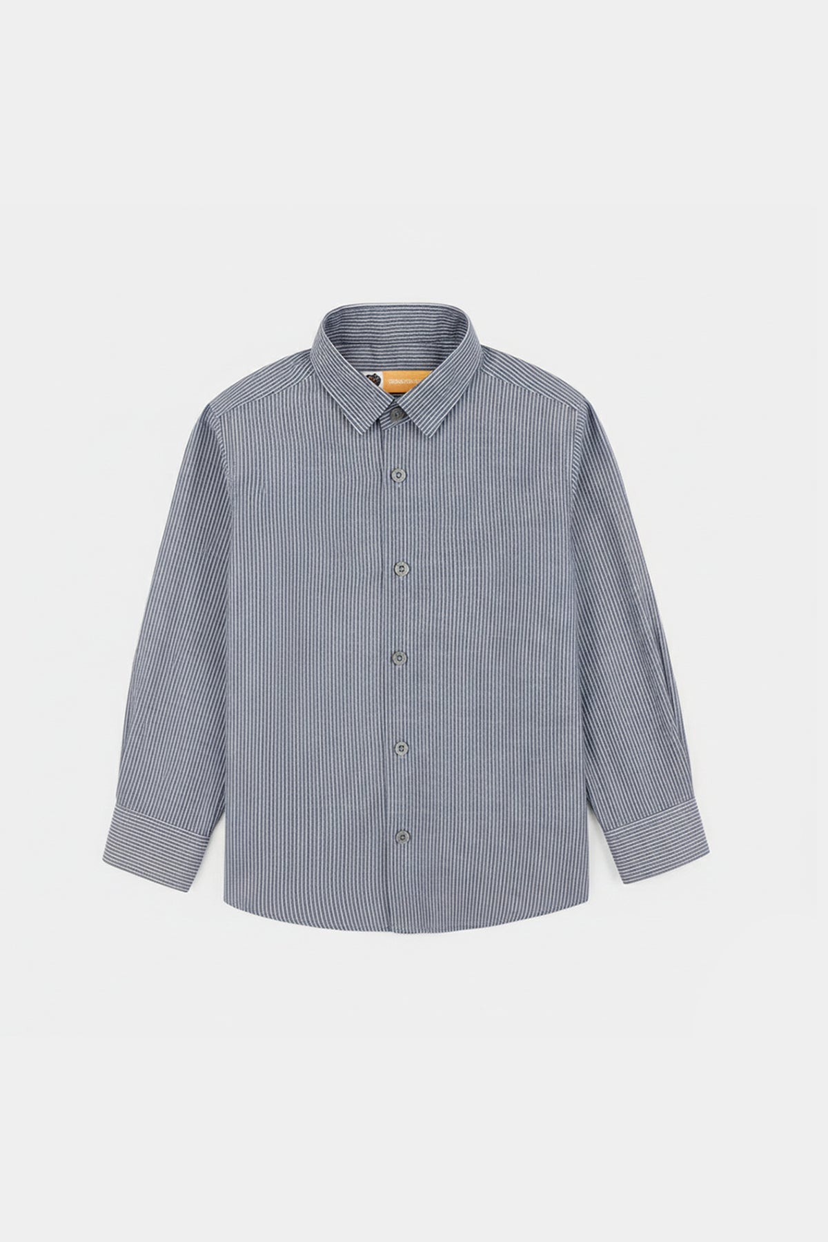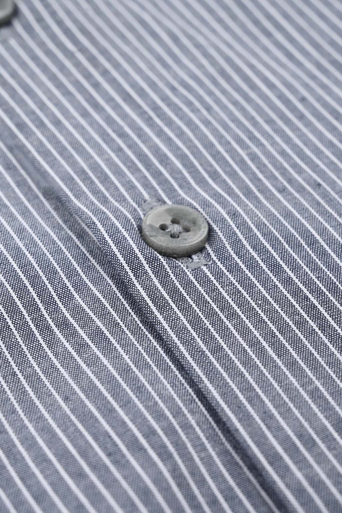 A stylish grey button-down shirt featuring sleek lining/stripes that adds a modern touch to any look.