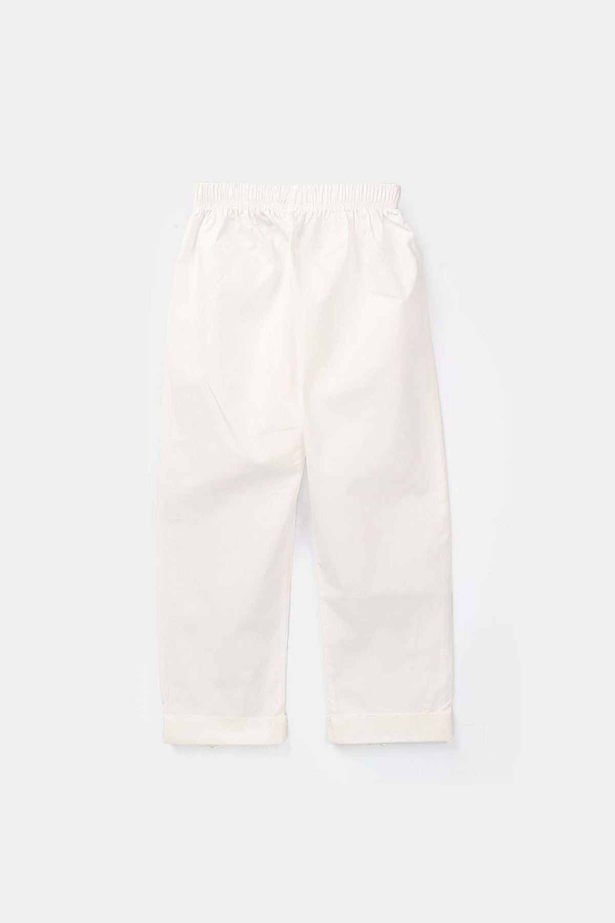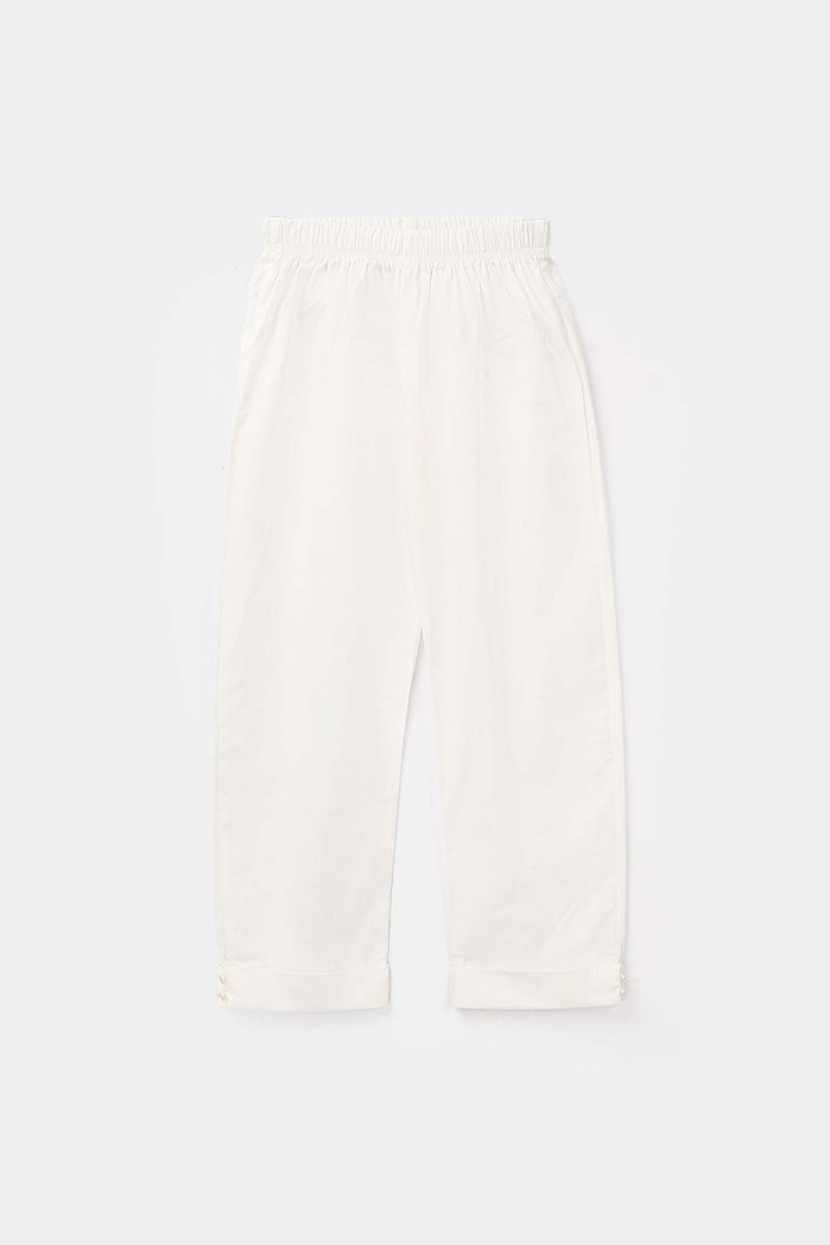 These basic white trousers feature pearl detailing on the sides and can be paired with any top or kurta for a versatile look.