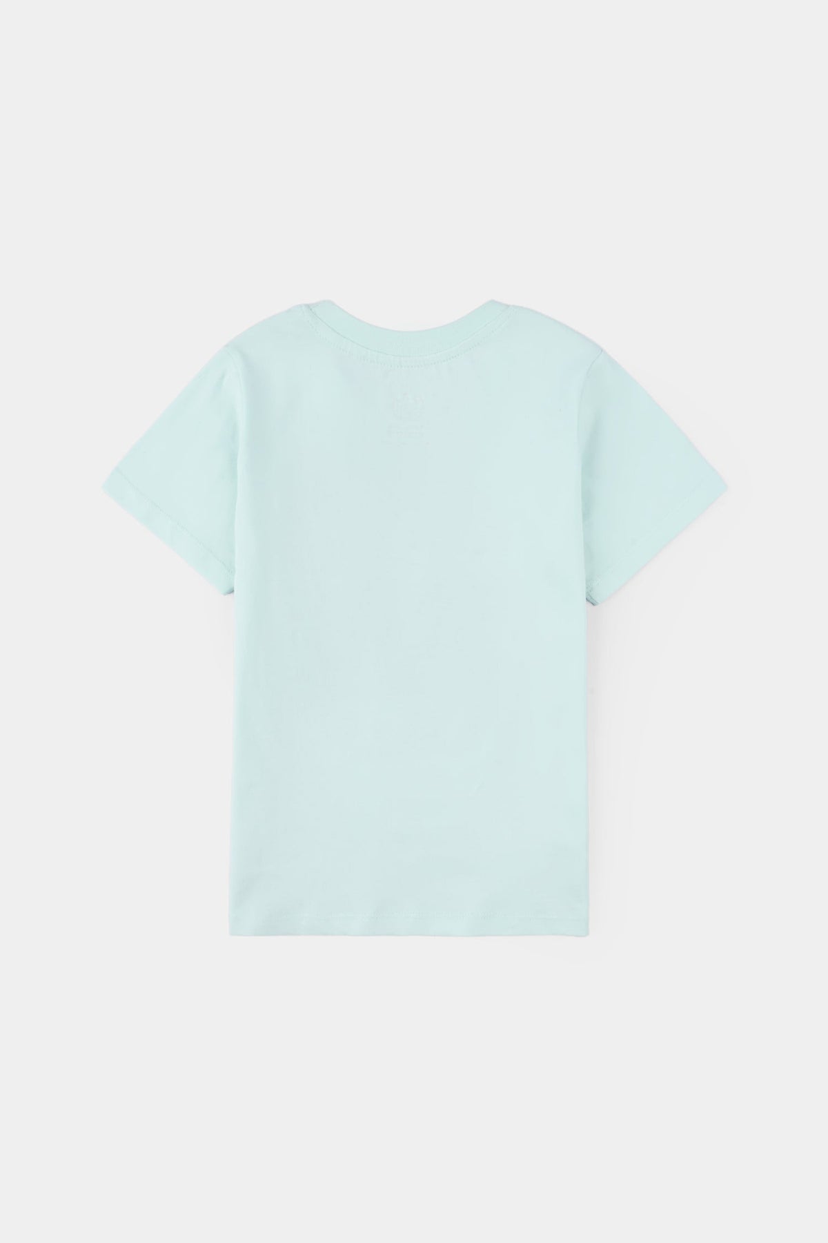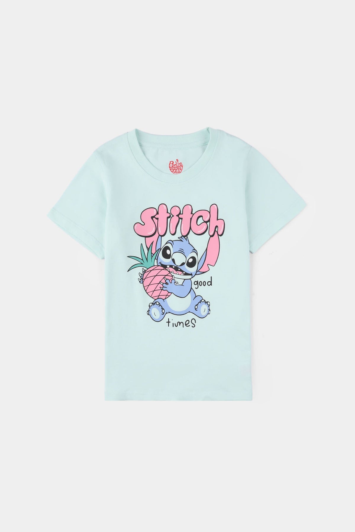 Girls Jersey/Terry T-Shirt in blue features a round neck, half sleeves, and a Sand Lilo graphic on the front and can be paired easily with any bottom.