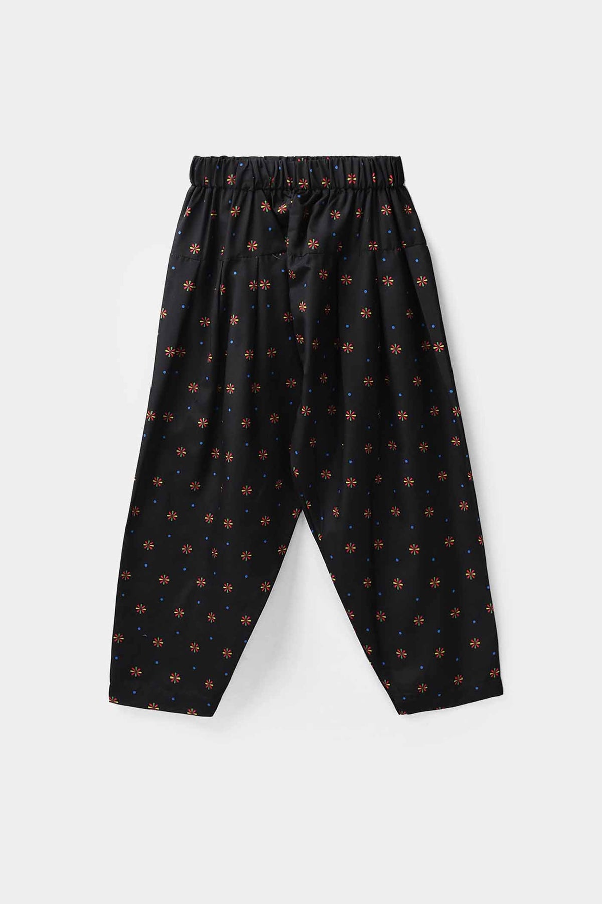 Girls poly satin printed shalwar in black, designed for a comfortable and stylish traditional look.