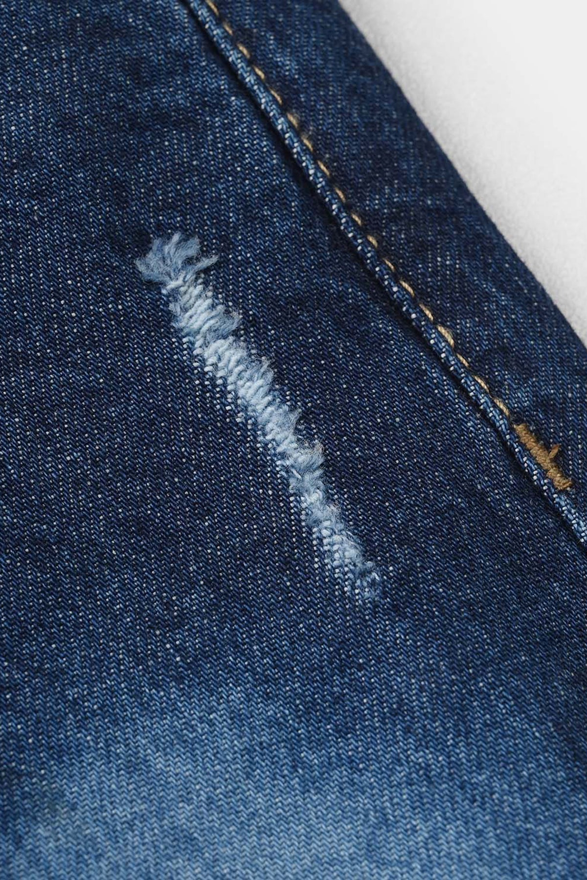 Infant boys’ denim viscose pant in dark blue, featuring a comfortable fit and versatile style, perfect with any top.