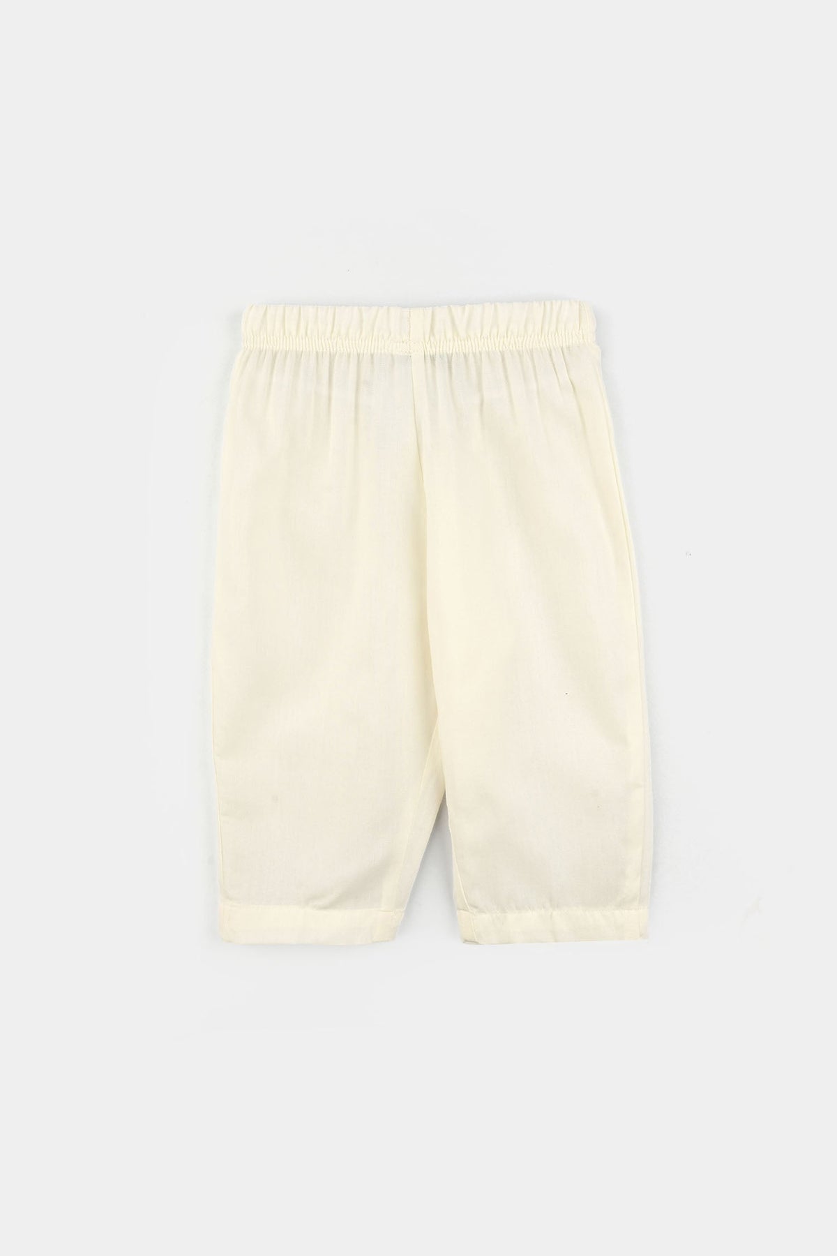Infant Boys Poly Viscose Kurta Pajama in Cream featuring a classic kurta neckline with an all-over polka dot print, paired with matching plain cream trousers for an elegant look.