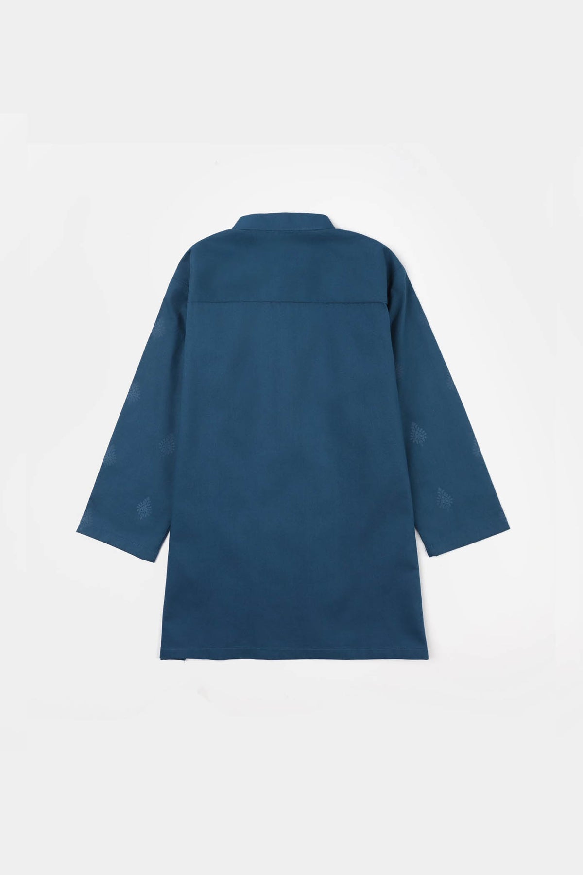 This green printed boys poplin kurta features a classic sherwani collar and full sleeves, giving your little one a smart traditional look for any occasion.