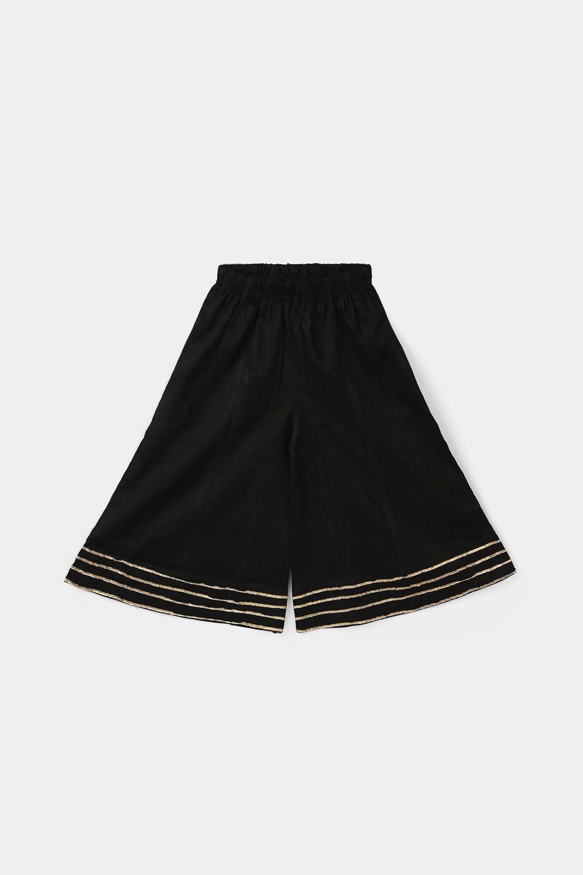 Infant girls' dhaka pants in black feature gota patti detailing on the hem for a stylish traditional look.