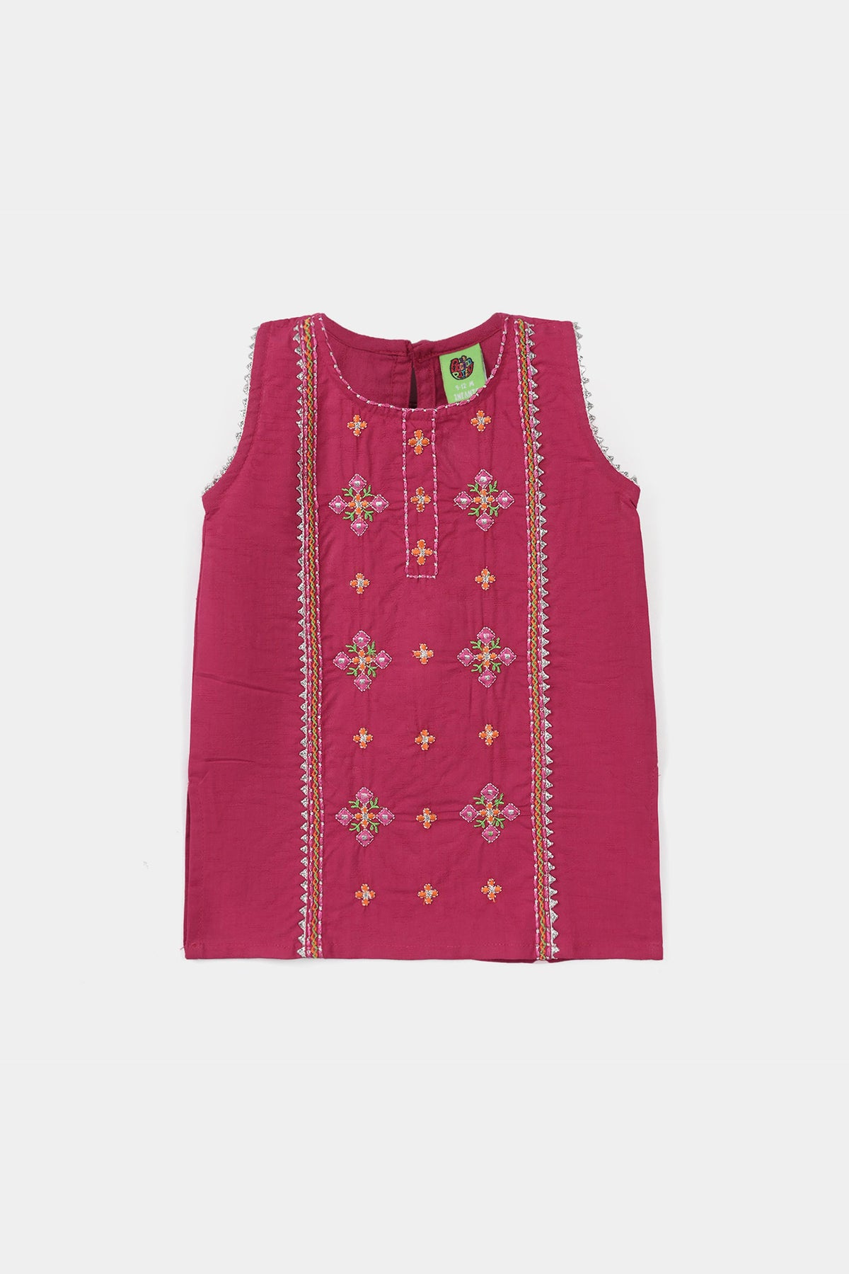 Infant Girls Jacquard Embroidered Kurti – Magenta