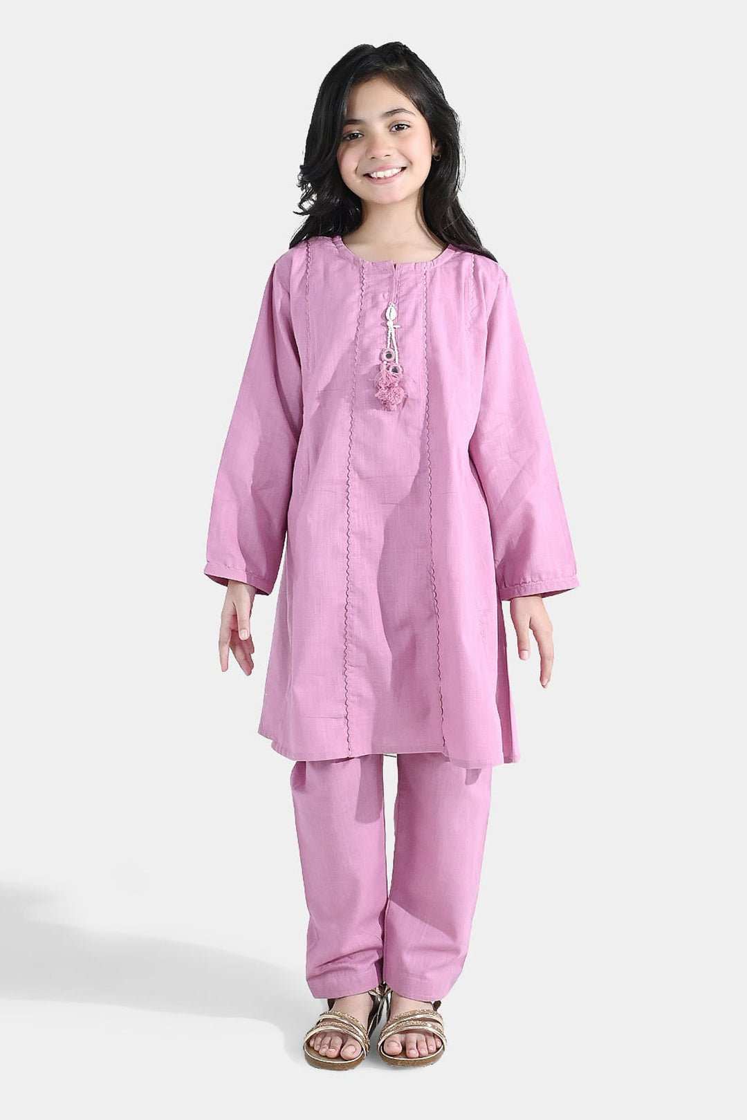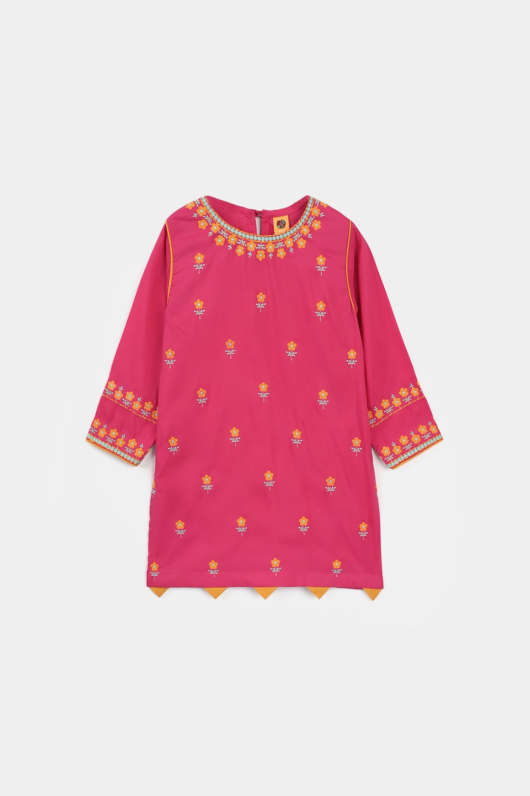 Girls Cotton Slub Embroidered Kurti (Noor-E-Titli) - Rose Pink