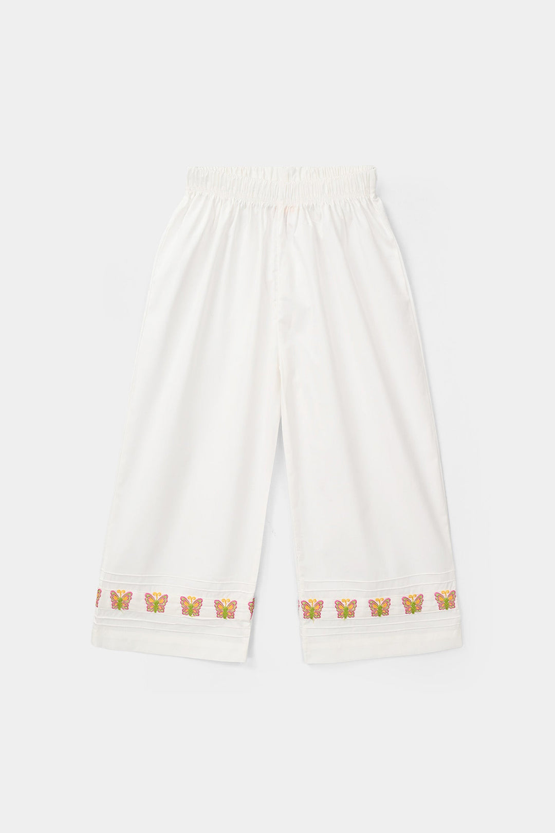 Girls Cotton Embroidered Culottes (Butterfly) - White