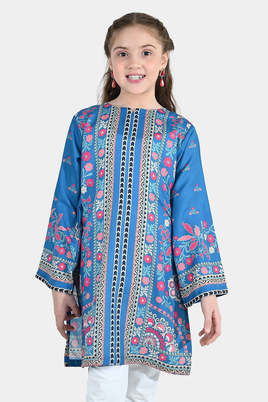 Girls Poly Lawn Printed Kurti (Mandala) – Blue