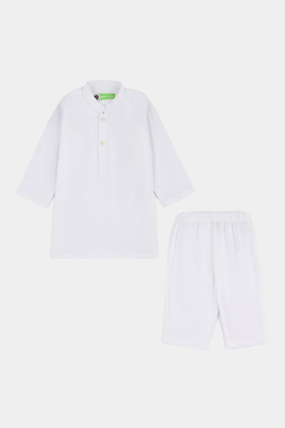Infant Boys Cotton Poplin Kurta Pajama - White