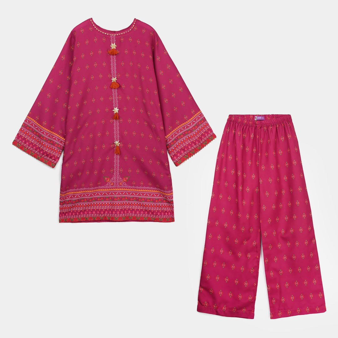 Girls Poly Mesh Printed 2Pcs - Magenta