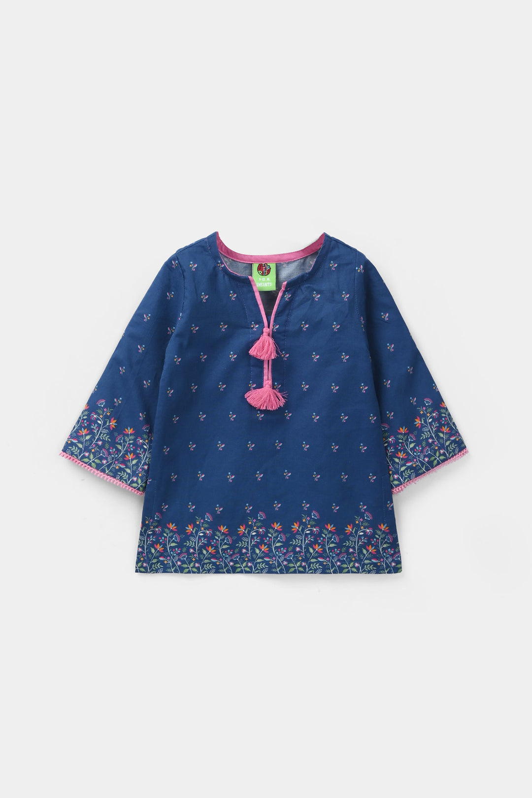 Infant Girls Cotton Poplin Printed Kurti Floral - Blue