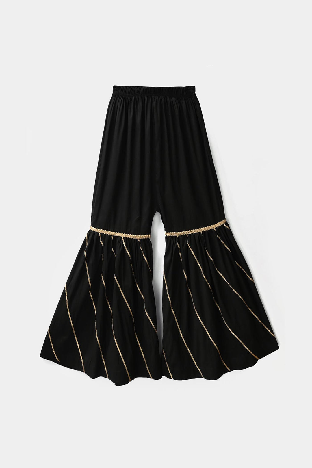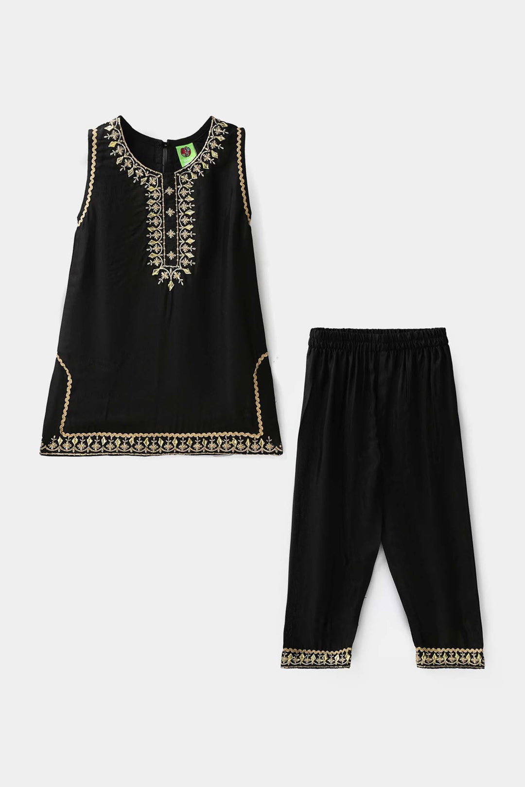Infant Girls Raw Silk 2Pcs Gota Phool - Black
