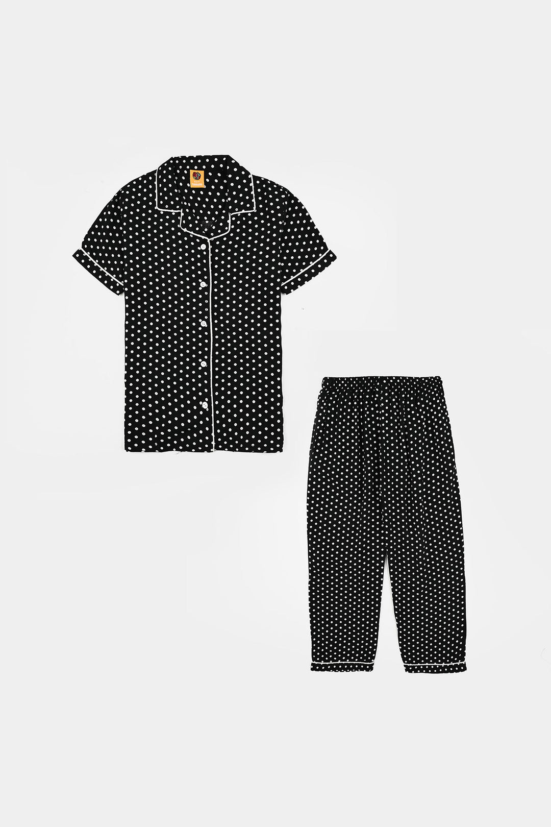Infant Girls Viscose Night Suit - Polka Dot - Black