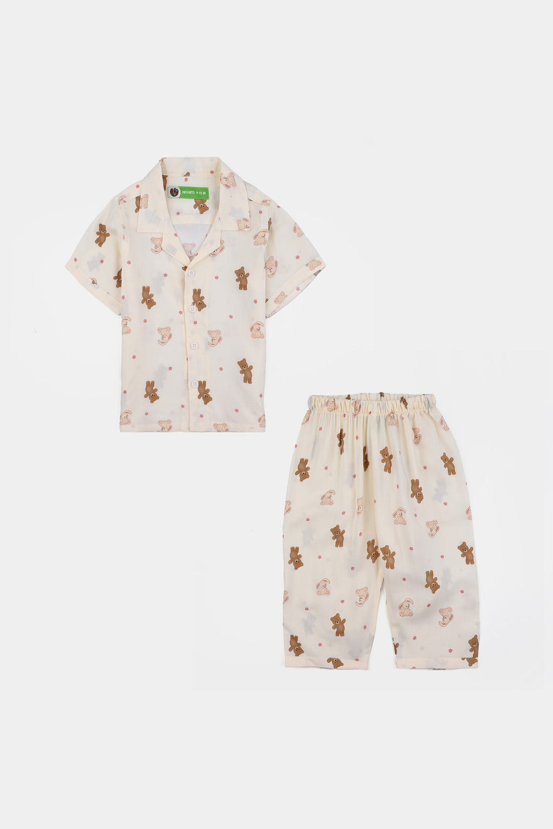 Infant Boys Viscose Night Suit (Teddy) - Off White