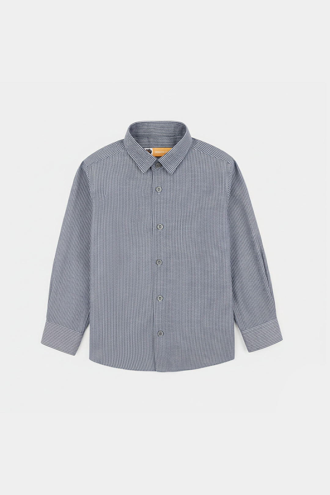 Boys Yarn Dyed Formal Striped Shirt – Grey
