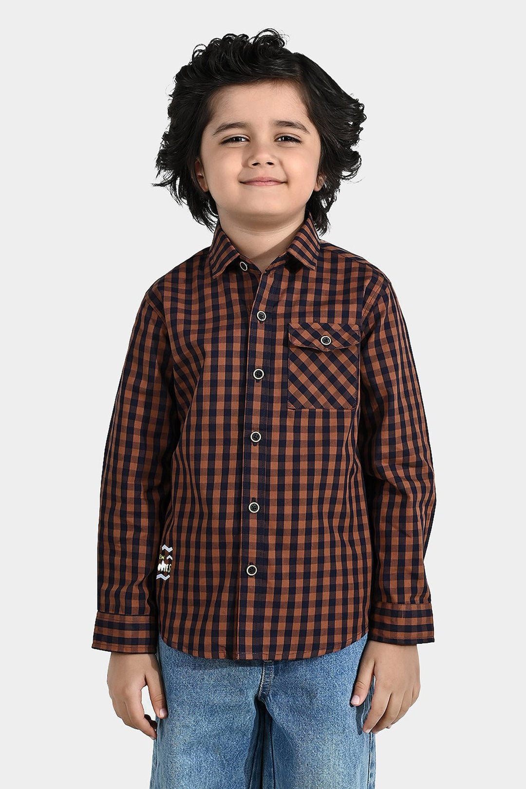 Boys Yarn Dyed Shirt (New Memories) - Brown